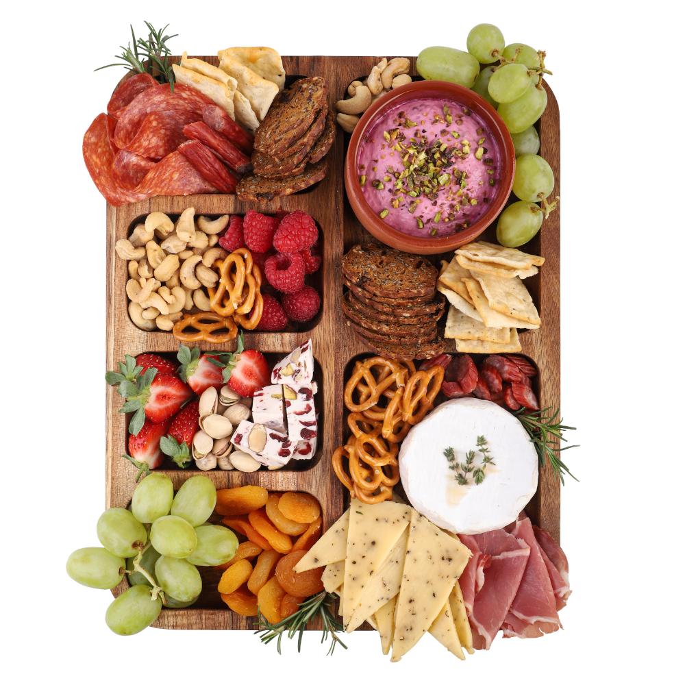 Alfresco Lane Acacia Wood 6 Compartment Rectangular Grazing Platter with Lid