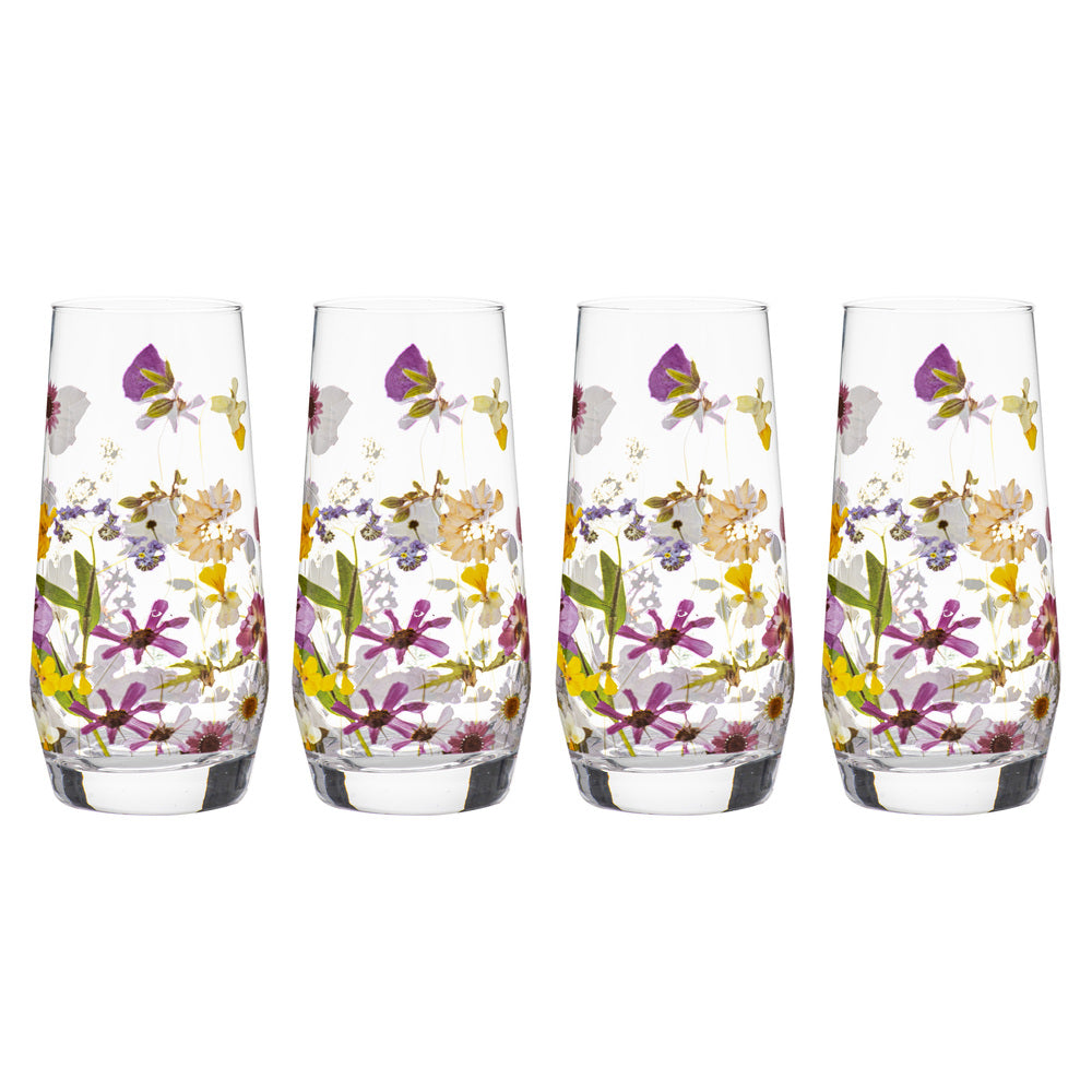 Ashdene Pressed Flowers Set Of 4 Glass Highball Tumblers