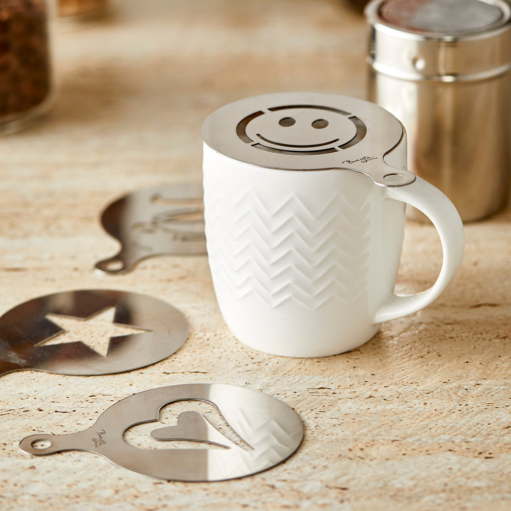 • Mesh top for fine dusting on your cappuccinos and hot chocolates