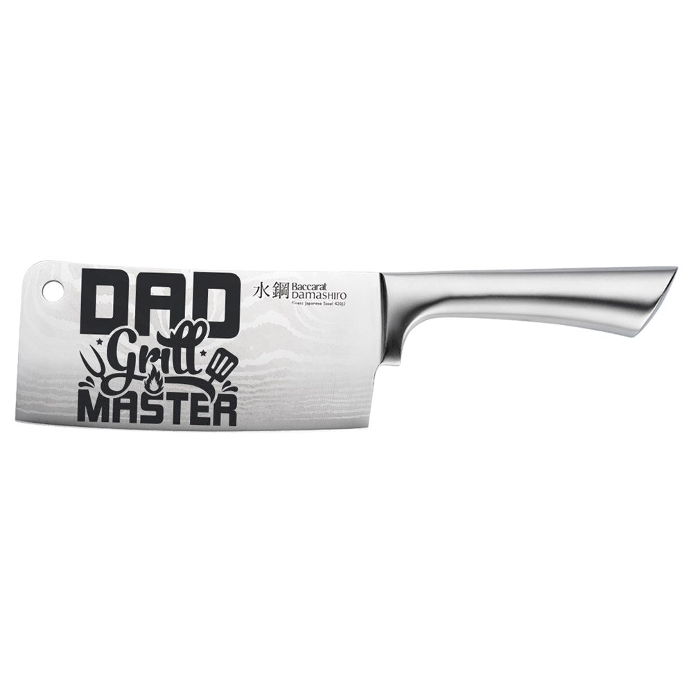 Surprise dad by showing him how much you appreciate him and his cooking with the Baccarat® Damashiro™ Cleaver Knife 17cm. Featuring a custom design, this knife arrives with the text 'The Grill Master' embellished across the blade as well as attractively boxed and ready for gifting. Cut through large pieces of meat with precision and control with the Baccarat® Damashiro™ Cleaver Knife 17cm! This high-performance kitchen staple is forged with stainless-steel blades for ultimate sharpness and smooth, easy chopping. Perfectly weighted and balanced, the Baccarat® Damashiro™ Cleaver offers a professional touch to your culinary experience at home. With the Baccarat® Damashiro™ Cleaver, you can create delicious meals with precise handling and enhanced control. Featuring a traditional Damascus inspired blade, the Baccarat® Damashiro™ Cleaver is a stylishly functional addition to any kitchen. Give dad a gift he will treasure for meals to come with the custom designed Baccarat® Damashiro™ Cleaver Knife 17cm.