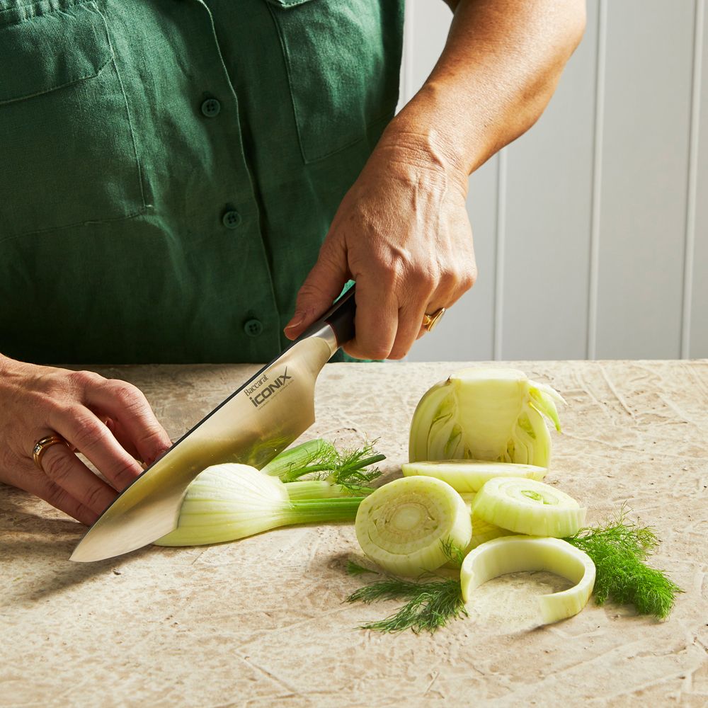 • The Baccarat® iconiX® Chefs Knife is an all-purpose knife that is curved to allow the cook to rock the knife on the cutting board for a more precise cut.