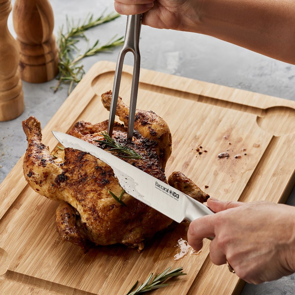 Carve succulent slices of roast meat with the high performance Baccarat® iD3® Carving Set inspired by traditional Japanese craftsman and blade-smiths.