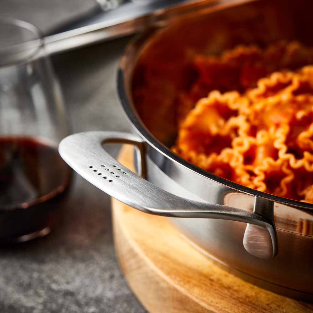• The handle is ergonomically curved and comprises MicroDot® technology for the ultimate comfort while cooking