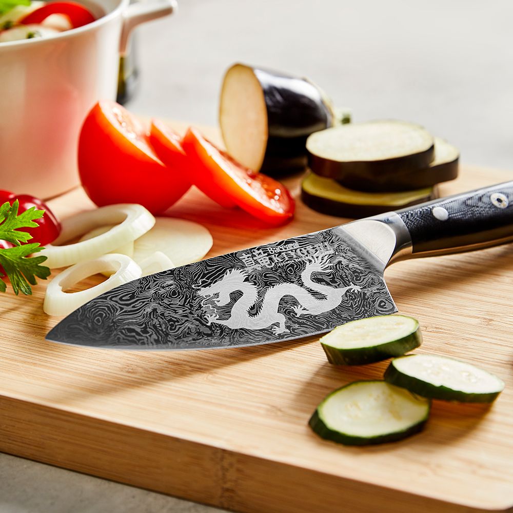 Baccarat® KIYOSHI® range features distinctive Damascus inspired blades inspired by traditional Japanese craftsman and Samurai sword makers, being characteristic of banding and mottling reminiscent of flowing water. Each blade also has a distinctive trademark Dragon insignia.