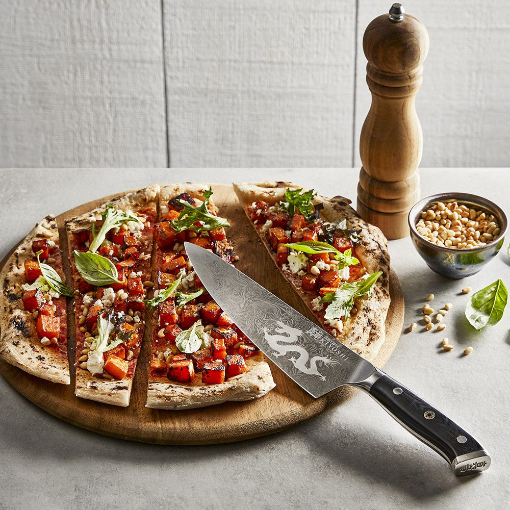 Baccarat® KIYOSHI® range features distinctive Damascus inspired blades inspired by traditional Japanese craftsman and Samurai sword makers, being characteristic of banding and mottling reminiscent of flowing water. Each blade also has a distinctive trademark Dragon insignia.