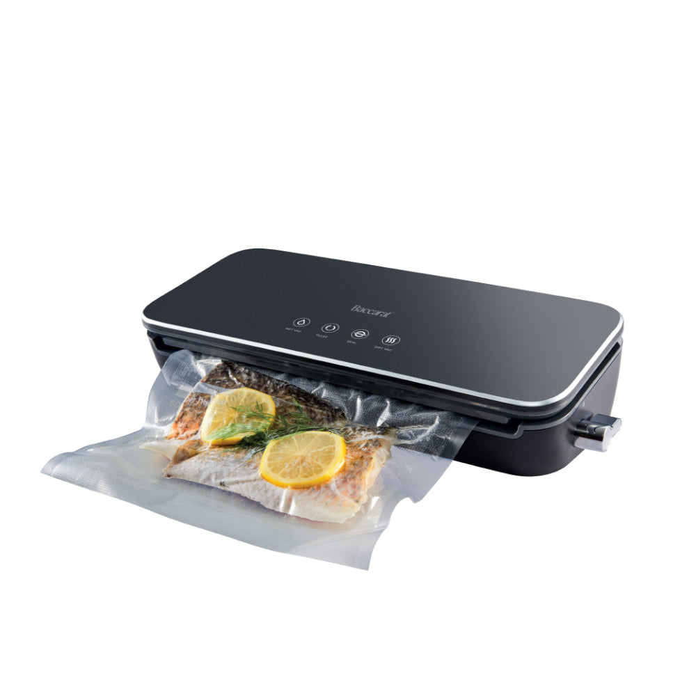 The Baccarat® The Easy Seal Vacuum Sealer creates an airtight seal to preserve your foods freshness, flavour, texture and nutrients for 5x longer than regular storage. Featuring a built-in bag roll storage up to 25cm wide and cutter allowing you to create bags quickly and easily to your desired size, reducing bag wastage. Baccarat Easy Seal Vacuum Sealer also comes with an external vacuum hose for compatible containers and zipper bags. Lock in and seal the freshness of all types of food such as meats, seafood, fruit, vegetables, cheese, marinades, pantry staples and so much more with the easy one-touch vacuum and seal operation. With 4 preset functions, an easy to view touch panel control, and a wet or dry vacuum seal function, makes sealing your food easier than ever. Backed by the Baccarat® Guarantee, the Baccarat® The Easy Seal Vacuum Sealer is the easy choice when you want to extend food freshness.