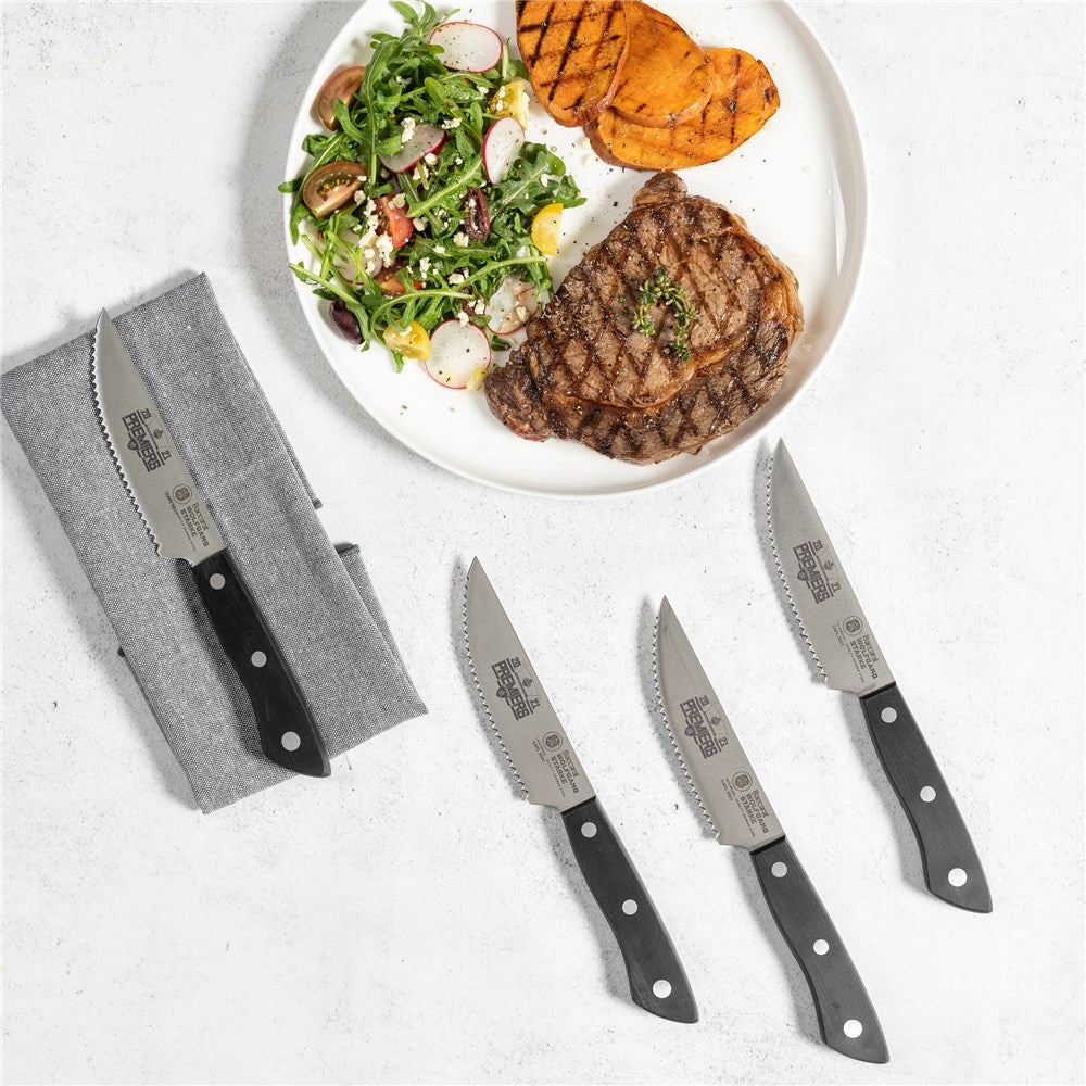 - Engineered with serrations along the blade edge to saw through meat without tearing or crushing, allowing for cleaner cuts