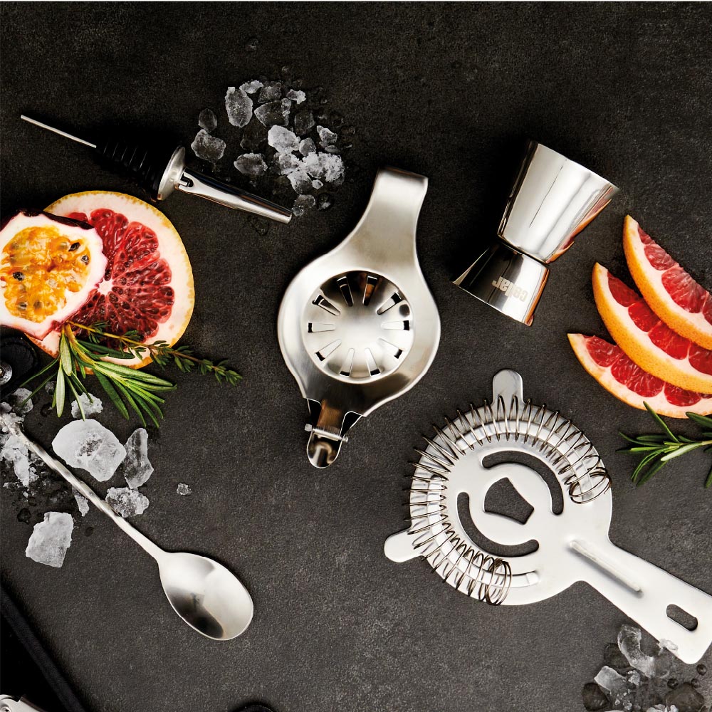 Create your favourite cocktails in style wherever you are! The Cellar Premium® Luxe 12 Piece Travel Bar Set is perfect for mixing and measuring professional cocktails on the go with a double jigger, a strainer, and a modern sleek shaker and all your essential tools. Made with professional mixologists in mind, this travel set is crafted from durable, food grade stainless steel with sturdy black carry case that doubles as a display for all your tools. The Cellar Premium® Luxe 12 Piece Travel Bar Set is beautifully boxed ready to gift for birthdays, weddings, and other special occasions. Cellar Premium® embraces sophistication and elegance with a collection of individually crafted glassware and bar accessories featuring unique pieces that enrich your drinking experience for any occasion.