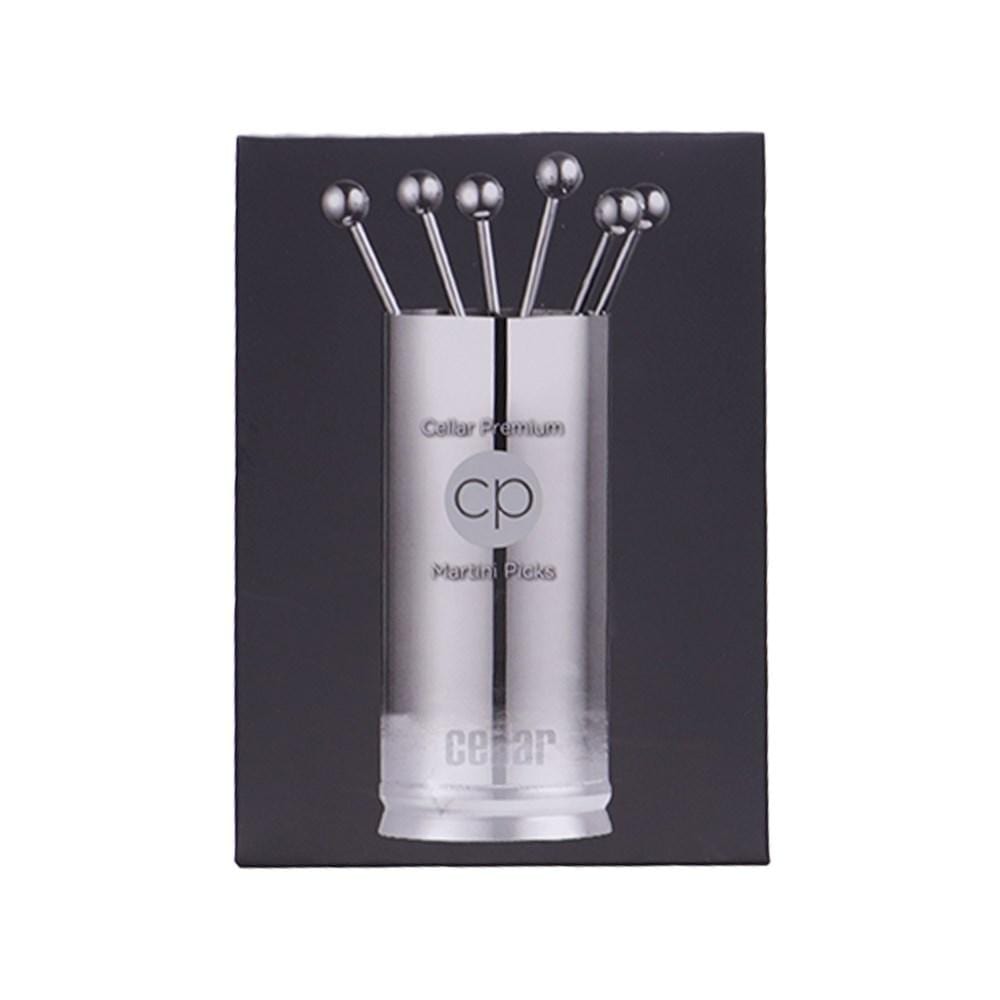 The presentation of your beverages is just as important as the beverage itself. Give your cocktails a little touch of class with the Cellar® Premium Martini Picks. This beverage accessory set includes 6 martini picks and holder crafted from the highest quality stainless steel for ensured durability and appeal. Infinitely reusable, the Cellar® Premium Martini Picks allow you and your guests to enjoy a smooth vodka or gin martini garnished with olives, onions or citrus without the waste created by wooden picks.