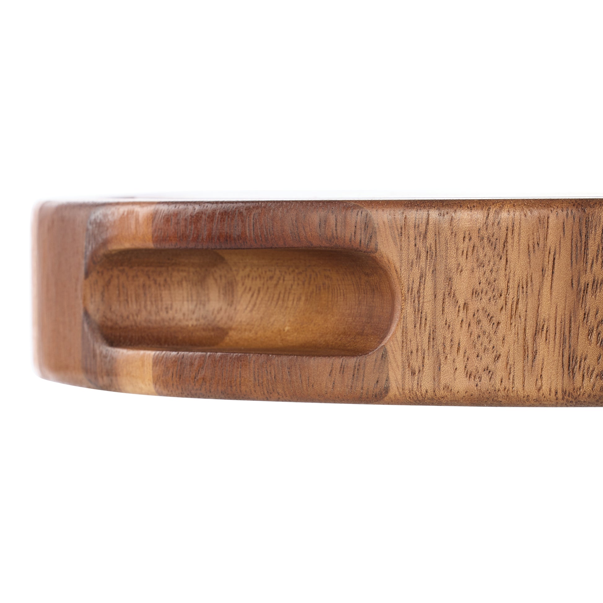 This Round Acacia Wood End Grain Cut Board is a stylish and durable solution for all your serving and entertaining needs. Made from acacia wood end grain cuts set together and laminated in a unique pattern, it lends a rustic charm to tabletop settings. Its natural hardness means it won’t easily be tarnished by constant knife movements. Its stylish design and wide round shape make it the perfect accompaniment for entertaining all year round