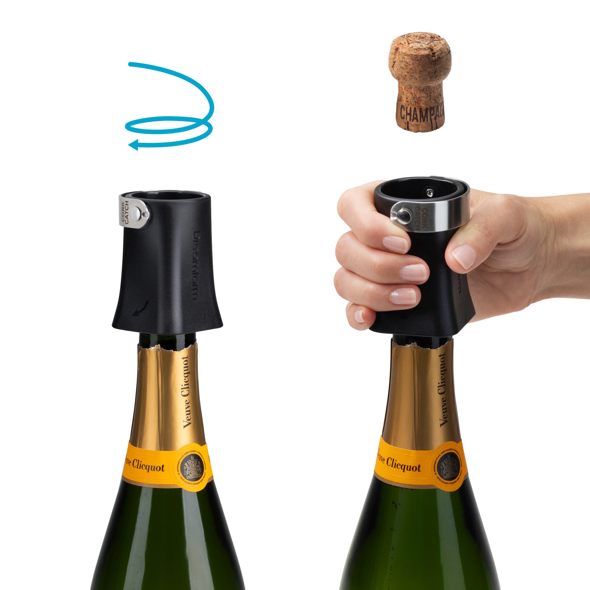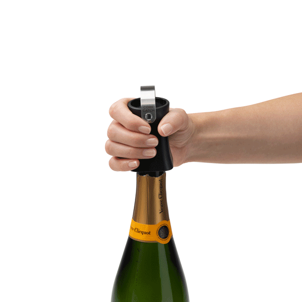 The Dreamfarm Champop is a champagne cork remover that safely pops and catches the cork, or lets it fly. The Champop’s unique internal thread safely and easily extracts champagne corks as it is twisted onto a bottle. In the upright position, the stainless steel loop catches the popped cork for safety and control.
