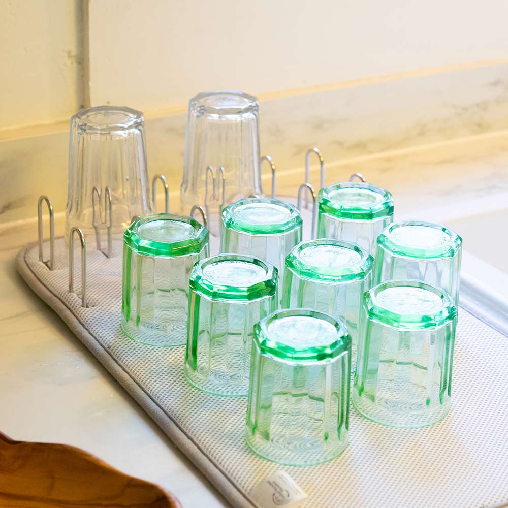 • Reversible – mesh side is great for items like lasses, mugs and bowls that typically collect condensation