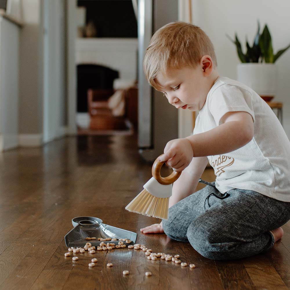 The Tiny Team Mini Brush & Dustpan Set measures a mere 18cm x 18cm, no job is too small for this adorable pair. Cleans up small messes .