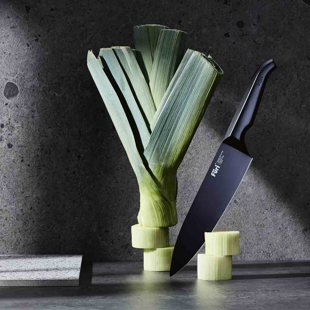 The versatile Furi Jet Black Magnetic Hexagonal knife block holds knives on the outside, for easy identification, or more discreetly inside; or in a combination of both. The block comes with six Furi knives constructed from X50CrMoV15 Japanese stainless steel.