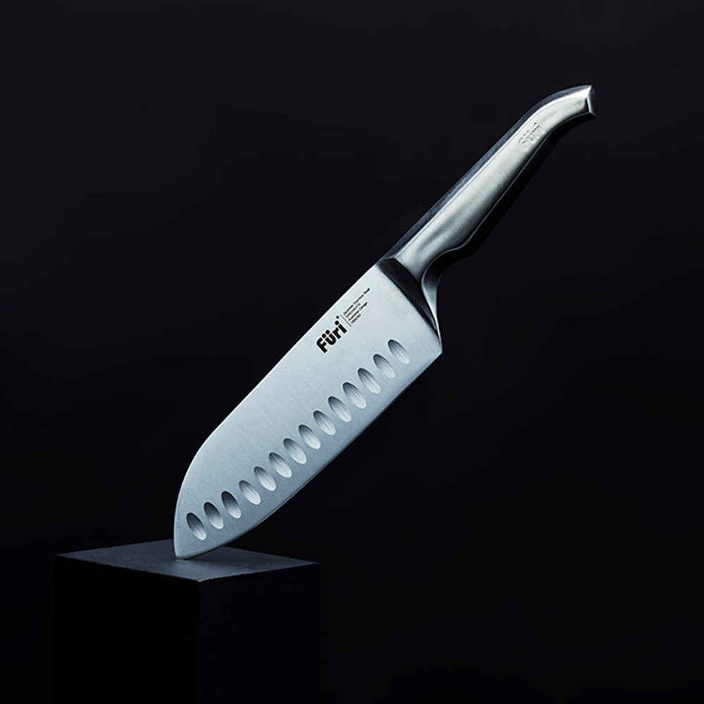 Artfully crafted to complement wooden and stone kitchen finishes, the Furi Stone Knife Block Set Flint Terazzo 6 Piece will become a stunning centrepiece in your kitchen. Crafted with the utmost care, the Furi Stone Knife Block Set Flint Terazzo 6 Piece ensures secure storage and pristine condition for your knives. Its universal slots allow you to organise the knives to your preference, giving you complete control over your kitchen tools. This set includes a Santoku Knife (17cm/7"), Cook's Knife (20cm/8"), Bread Knife (20cm/8"), Utility Knife (15cm/6"), Asian Utility Knife (12cm/4.5"). The block itself is constructed with natural materials, combining stone and cement to create a sleek terrazzo effect. Each blade is meticulously crafted from a high-carbon Japanese stainless steel alloy, for exceptional sharpness and edge retention. Featuring Furi's innovative 'reverse-wedge' handle, which provides a secure grip and reduces hand fatigue, you can be sure of comfort and control at all times. Experience a perfect blend of functionality, style, and craftsmanship with the Furi Stone Knife Block Set Flint Terazzo 6 Piece.