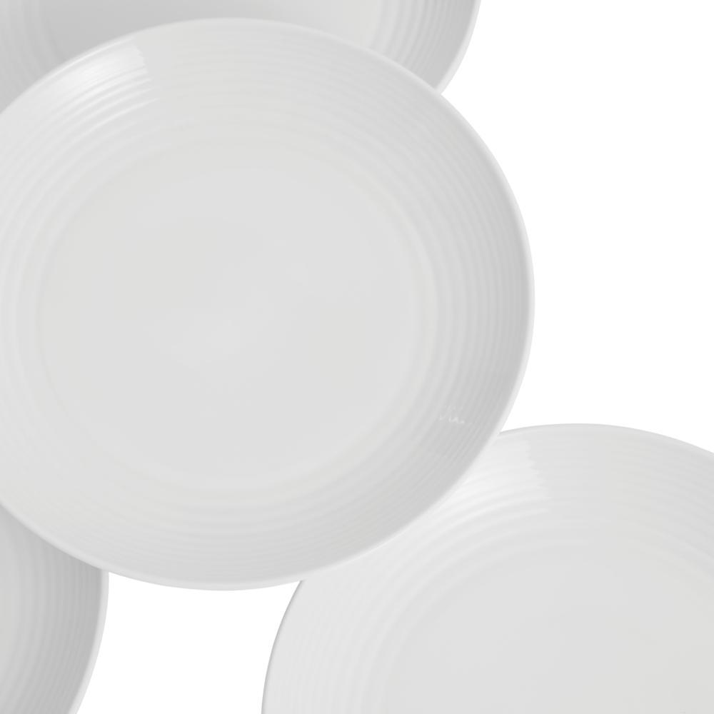 The white Maze tableware collection by Gordon Ramsay is contemporary and stylish, yet durable enough for everyday use. This set of four 22cm plates is rendered in a subtle white glaze and decorated with embossed concentric circles.