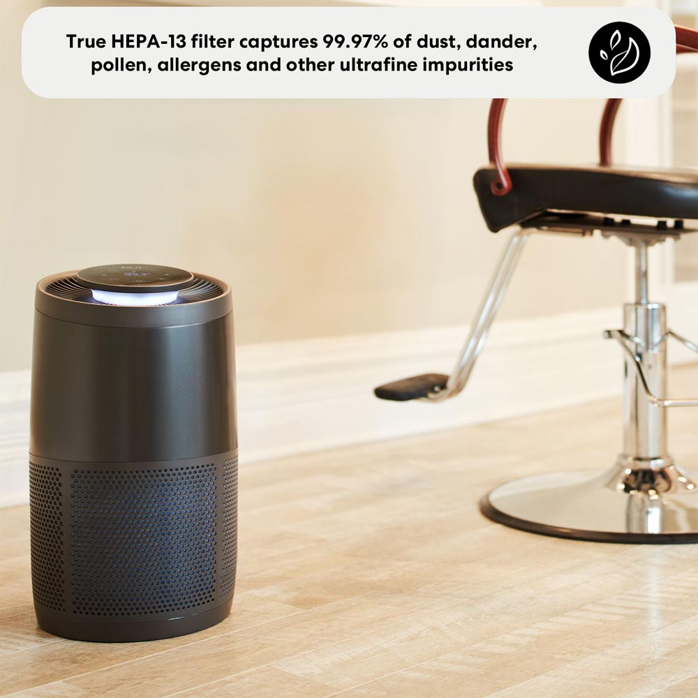 - Removes 99.97% of ultrafine airborne impurities and 99.9% of virus, bacteria and mold particles from treated air
