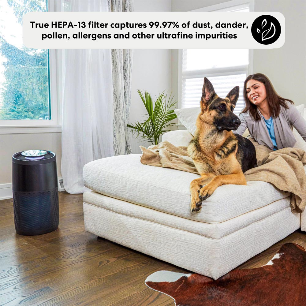 - Removes 99.97% of ultrafine airborne impurities and 99.9% of virus, bacteria and mold particles from treated air