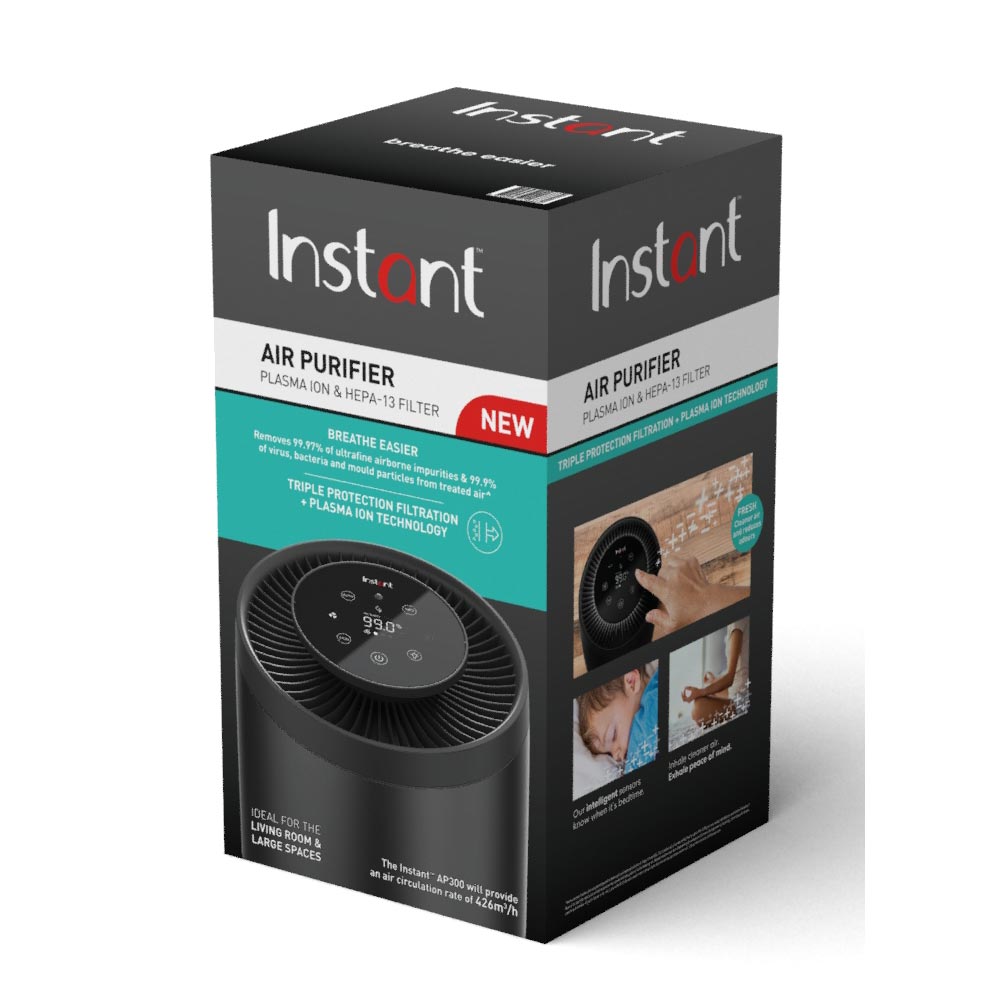 The Instant Air Purifier AP300 Charcoal is a compact, powerhouse solution for pure and revitalising indoor air. Engineered to eliminate 99.97% of ultrafine airborne impurities, allergens, and viruses, this purifier is perfect for larger spaces like living rooms. Harnessing Plasma Ion Technology, the purifier releases positive and negative ions to effectively neutralise pollutants. Smart sensors continuously monitor air quality, adjusting the fan speed automatically. Enjoy immediate results, with the air completely recycled five times per hour. The Night Mode ensures tranquillity by dimming lights and reducing noise, while Eco Mode optimises energy efficiency. With Auto Mode adapting to changing conditions and a coloured air quality indicator for quick assessments, the Instant Air Purifier AP300 Charcoal guarantees a breath of fresh air in your surroundings.