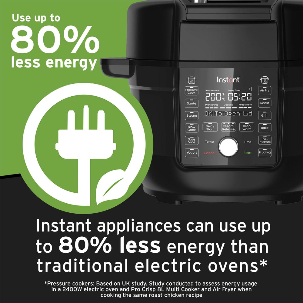 - Energy-efficient cooking: Uses up to 80% less energy than traditional electric ovens, saving on both energy consumption and cost*