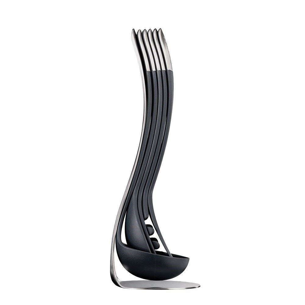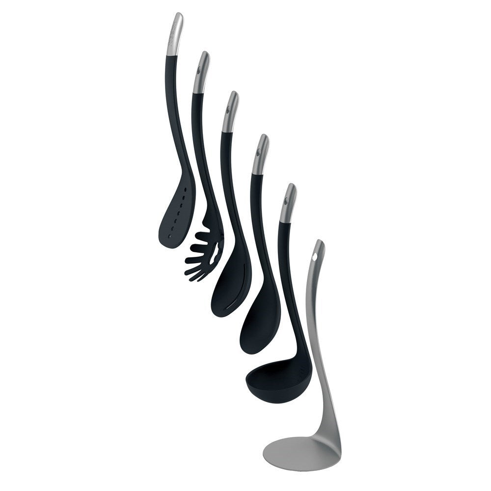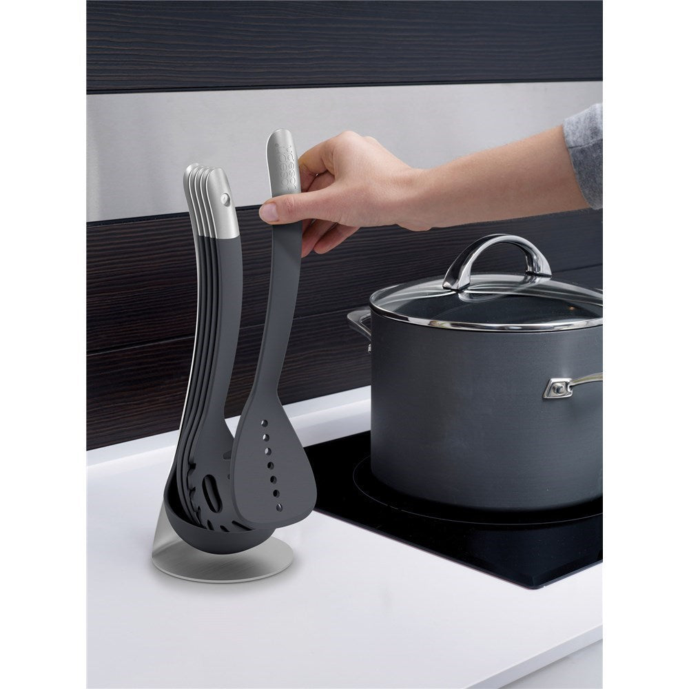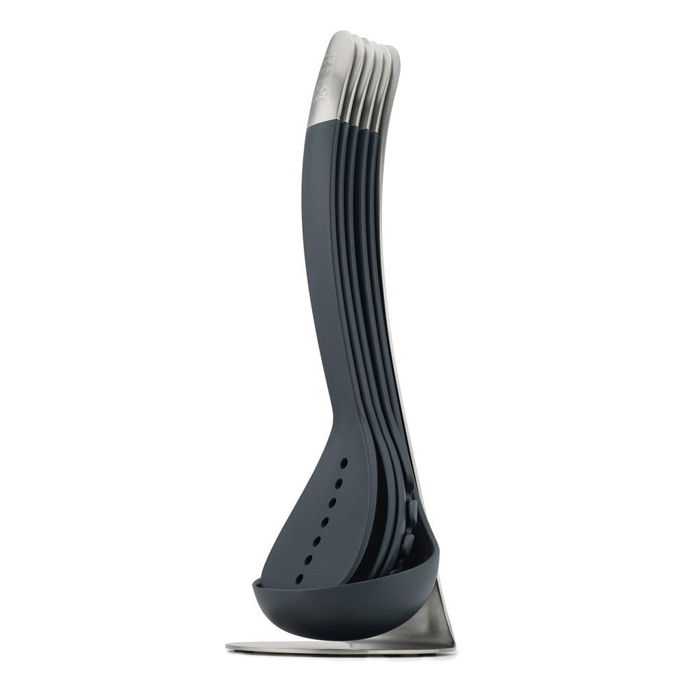 Crafted with beautiful stainless-steel finish, the Nest Utensils from the Collection 100 by Joseph Joseph is a must-have addition to any kitchen! Comprising of five essential kitchen utensils, the Nest Utensils also comes complete with a non-slip, stainless-steel base. Each utensil is expertly crafted from heat resistant nylon and are sure to bring a distinctively contemporary aesthetic to your cooking experience. Each utensil neatly nests together securely held in place by magnets make them conveniently easy to store! Enjoy a clutter free kitchen and a stylish addition to your culinary collection with the Nest Utensils by Joseph Joseph!