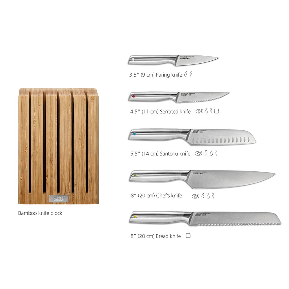 Joseph Joseph Elevate Steel Knives Bamboo 5-Piece Knife Block Set