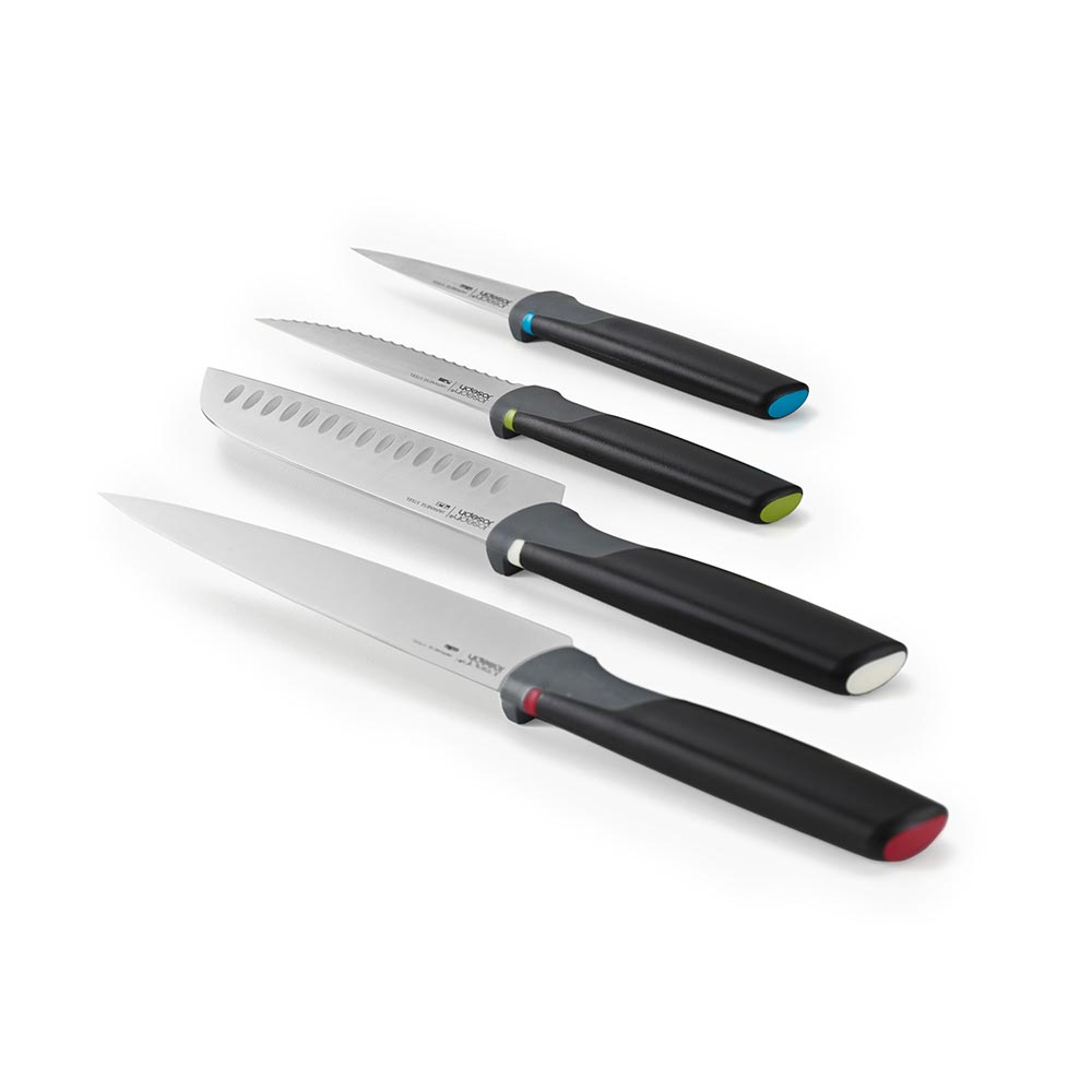 - Smart, slimline case neatly houses 4 chopping boards and 4 Elevate™ knives
