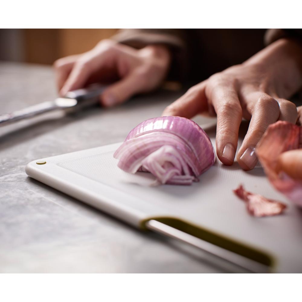 • Knife-friendly, textured cutting surfaces and non-slip feet