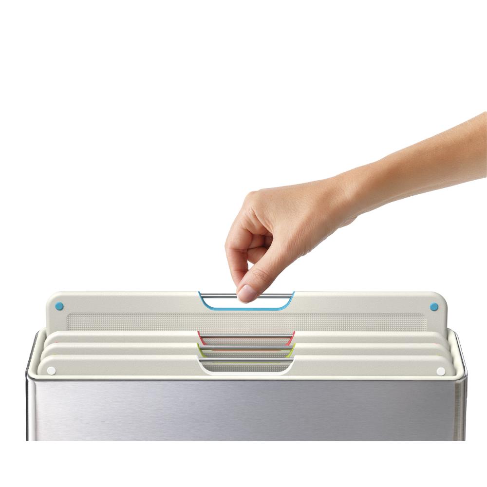 Having multiple boards on hand is convenient, but storage can be a challenge. That's why we designed Folio™. This set of four chopping boards is housed in a sleek stainless-steel case, keeping your worktop neatly organised. Each board features a knife-friendly, textured surface on both sides and non-slip feet for secure chopping. The subtly colour-coded boards and feet help prevent cross-contamination and stainless-steel selecting bars make them easy to remove. The fingerprint-proof case also holds the boards apart, allowing air to circulate for efficient drying. Board size: 24.0 x 34.0 cm (9.5 x 13.3 inches).