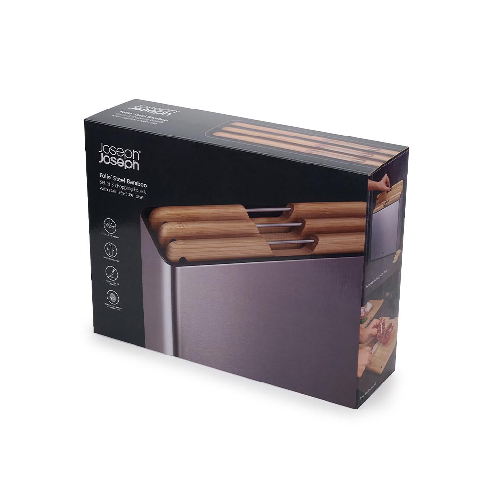 Joseph Joseph Folio Steel Bamboo 3 Piece Chopping Board Set with Storage Case