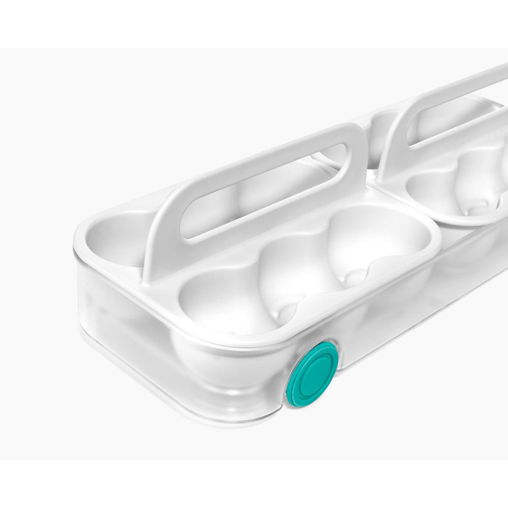 Cardboard egg boxes can become damp and disintegrate in the fridge and must be opened to see how many eggs are left. But this clever design offers a better solution. It features two trays that can each hold up to six eggs, keeping them organised and visible. The trays sit in a smooth-rolling caddy with an easy-pull handle for quick access and feature carry handles for convenient transport to your cooking area and back to the fridge.