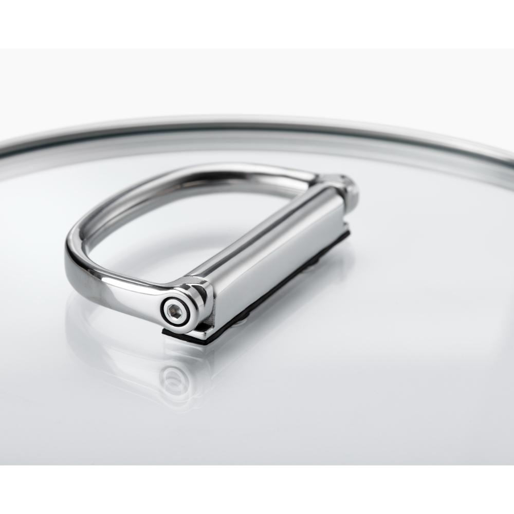 • Folding stainless-steel handle saves up to 50% more space than a standard pan and 20-year lifetime tested