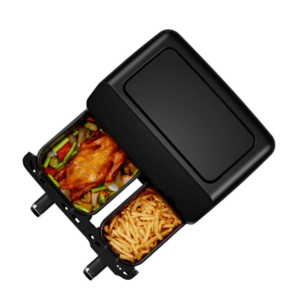 With its innovative dual-drawer design, this kitchen powerhouse offers unparalleled versatility and convenience for both aspiring chefs and everyday cooks. One of the standout features of the Dual Draw Air Fryer is its unique dual-drawer configuration. You can now cook two different dishes simultaneously, each with its own dedicated cooking power. Whether you're preparing a feast for guests or simply need a quick meal, this air fryer has you covered. The large drawer holds a generous 6L, while the smaller drawer offers a capacity of 4L. No matter the portion size or culinary creation, there's ample space to accommodate your cooking needs. With an adjustable temperature range of 80 - 200 degrees Celsius you have full control over your cooking. Whether you are air frying, baking, roasting, or grilling, achieve perfect results every time. The user-friendly touch control panel offers a wide range of cooking options, making it simple to prepare a variety of dishes to satisfy your cravings. The 444 stainless steel heating element ensures rapid and even cooking, delivering consistent, mouthwatering results with every use. With the Flex View Dual Draw Air Fryer in your kitchen, cooking becomes an art form. Discover the joys of multitasking with precision and enjoy the mouthwatering delights that only a dual-drawer air fryer can provide. Upgrade your culinary game today with the Dual Draw Air Fryer where two foods, two ways, at the same time, is just the beginning of your culinary adventure.