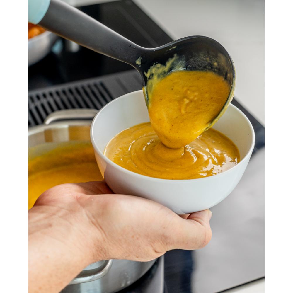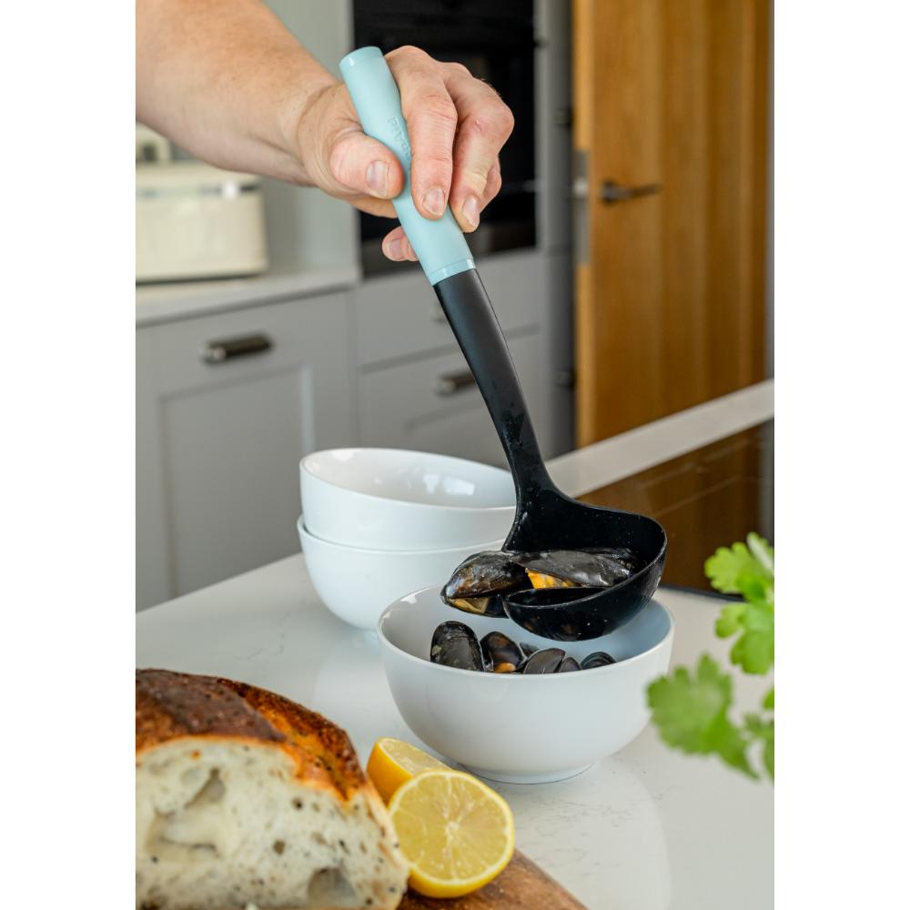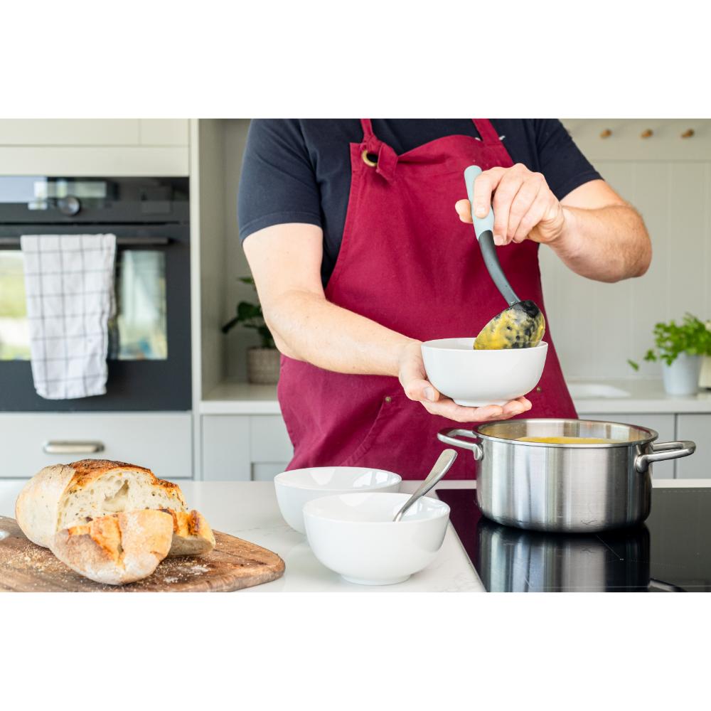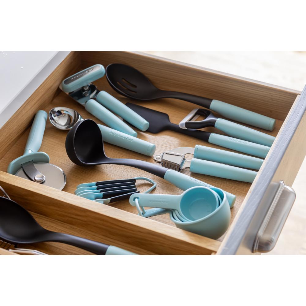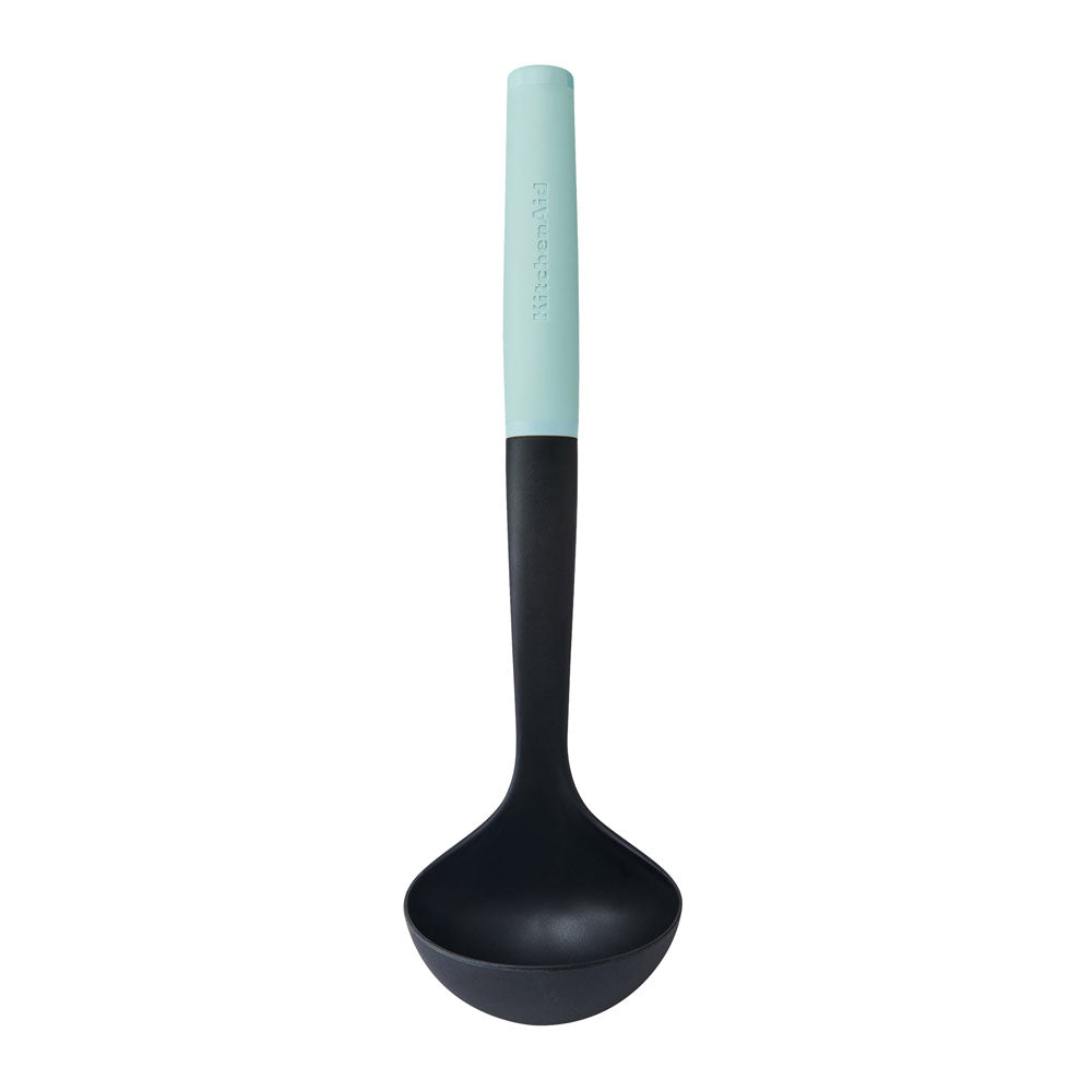 Introducing the KitchenAid Nylon Ladle, the perfect kitchen companion for effortless soup, sauce, and gravy serving. Crafted from highly durable nylon, this ladle is designed with a long handle and a deep bowl for precise pouring. With a heat-resistant capacity of up to 232?, it's ideal for use around hot pans and foods. Plus, its non-scratch design makes it safe for all cookware, including non-stick surfaces. The sleek ABS handle is available in classic White and bold Empire Red, adding a touch of style to your culinary adventures. Choose durability, functionality, and aesthetic appeal with the KitchenAid Nylon Ladle.