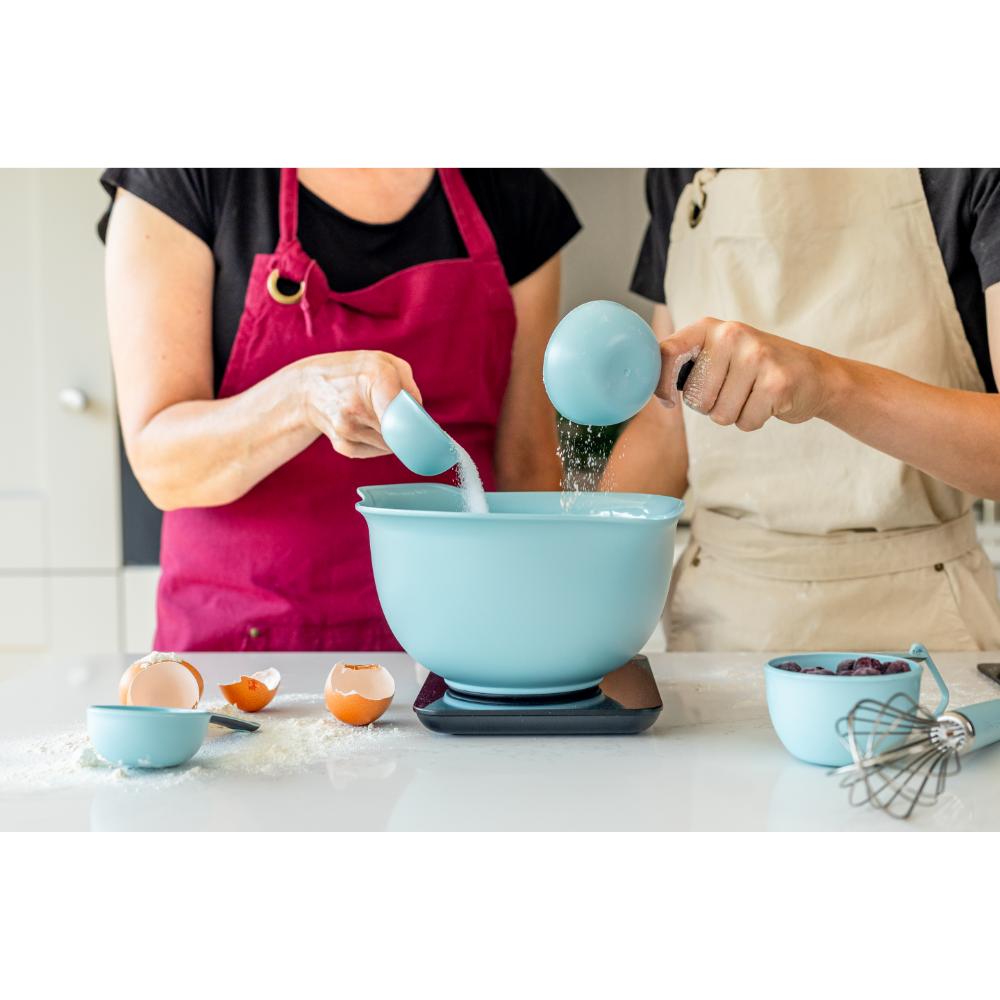 This KitchenAid Measuring Cup Set includes four different cup sizes: 1 Cup (237ml), ½ Cup (118ml), ⅓ Cup (79ml) and ¼ Cup (59ml). These cups work with both wet and dry ingredients.