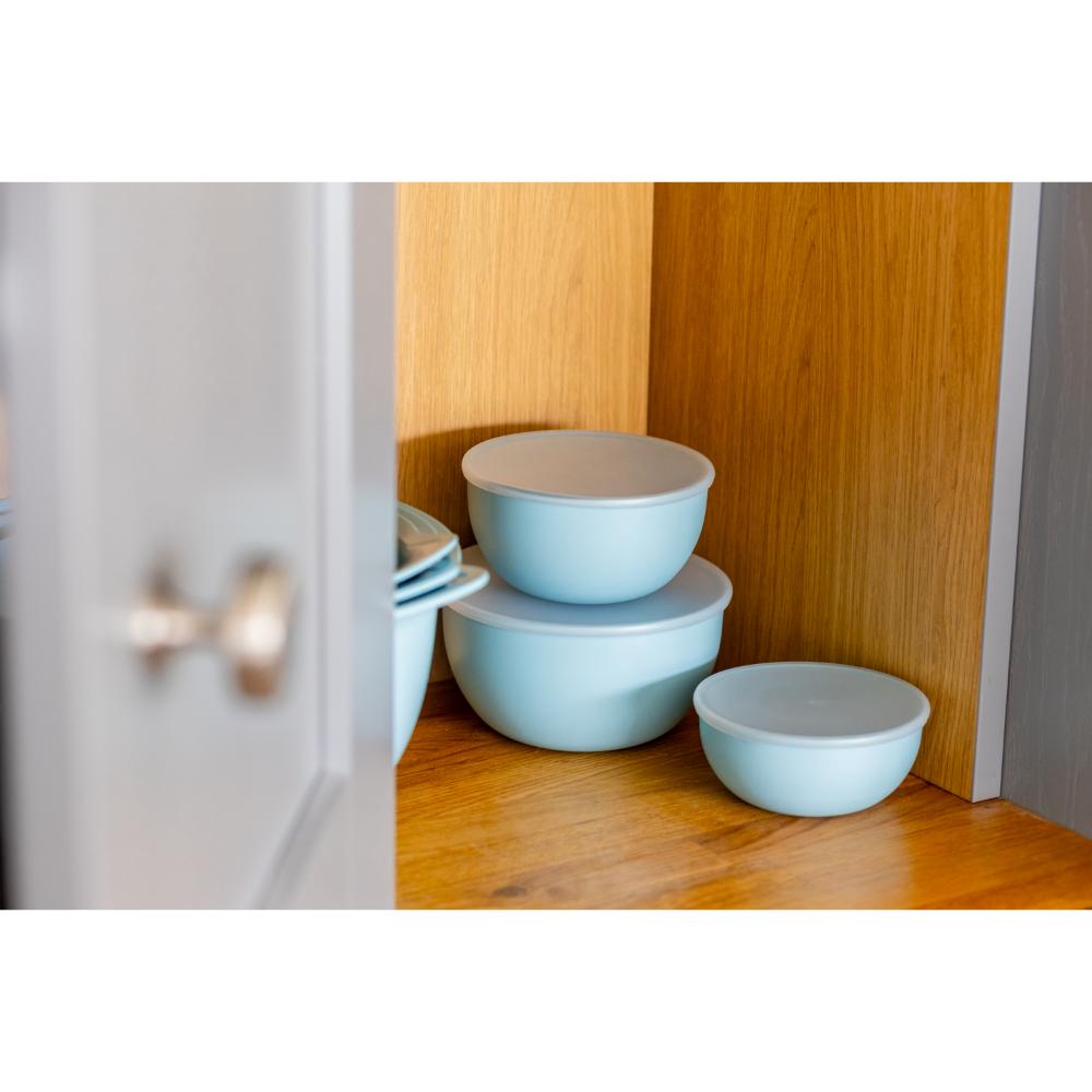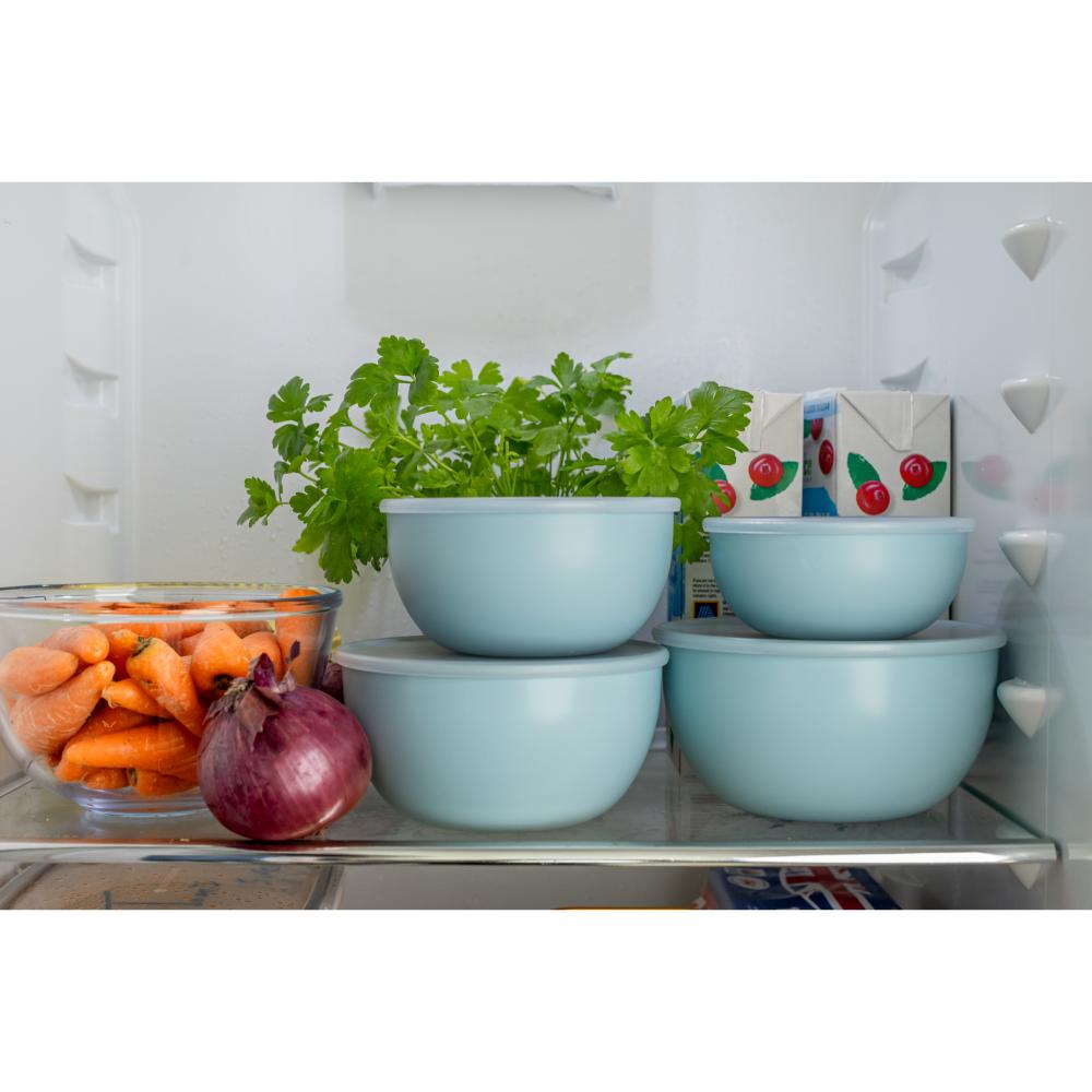 This KitchenAid Meal Prep Bowl Set includes 1½, 2½, 3½ and 4½ cups (equivalent to 355ml, 591ml, 828ml and 1065ml sizes). The bowls come with covers and they nest together to save space between uses. They are dishwasher-safe for easy cleanup, and microwave safe for up to five minutes.