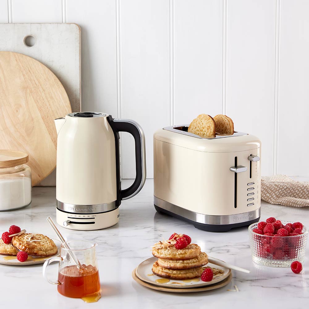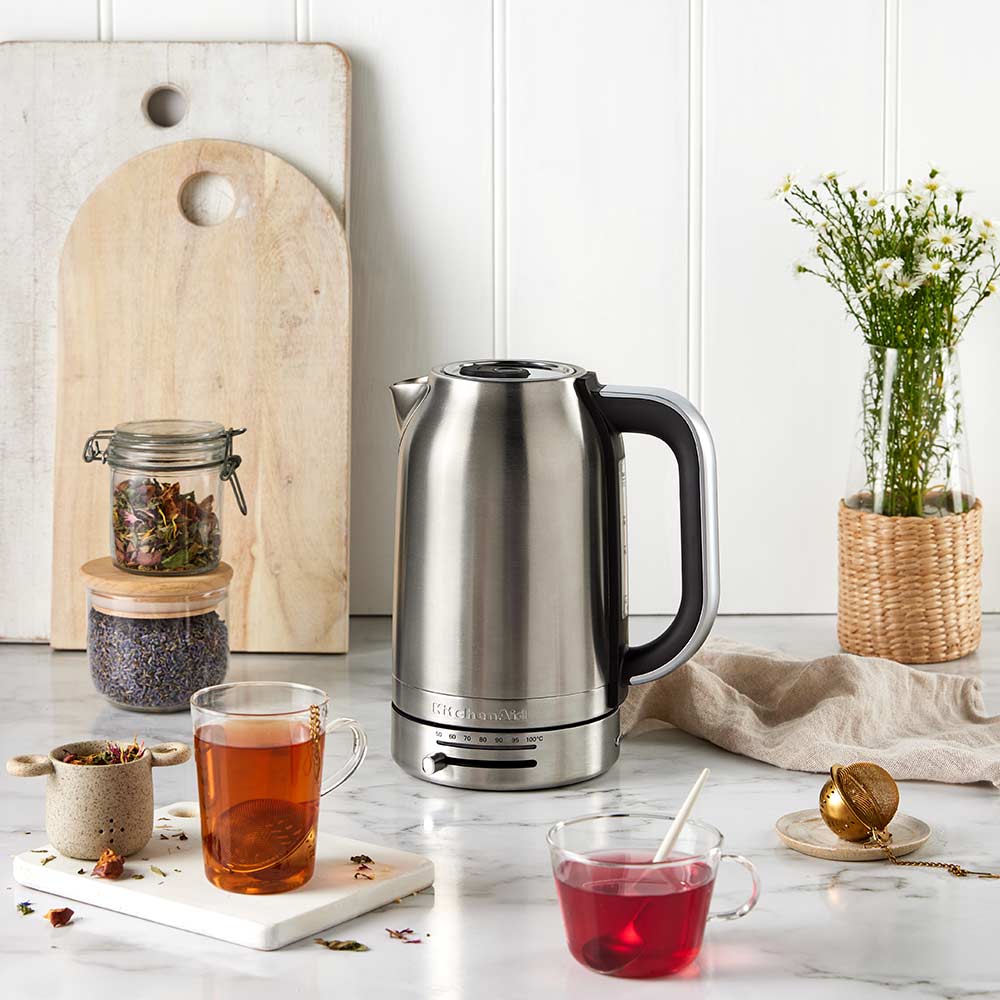 Elevate your breakfast possibilities with the KitchenAid® 1.7 L Variable Temperature Kettle, featuring automatic heating technology. It quickly and quietly boils water to the desired temperature, and automatically shuts off after boiling is complete. Built to last, the kettle is brushed stainless steel inside, and comes with a washable and removeable limescale filter to help reduce limescale. With functionality in mind, this kettle features a premium spout design for quick and controlled pour that won’t leave drips down your kettle. Available in three kitchen savvy colours: Almond Cream, Stainless steel, and Empire Red. Complete your kitchen with the coordinating KitchenAid® collection.