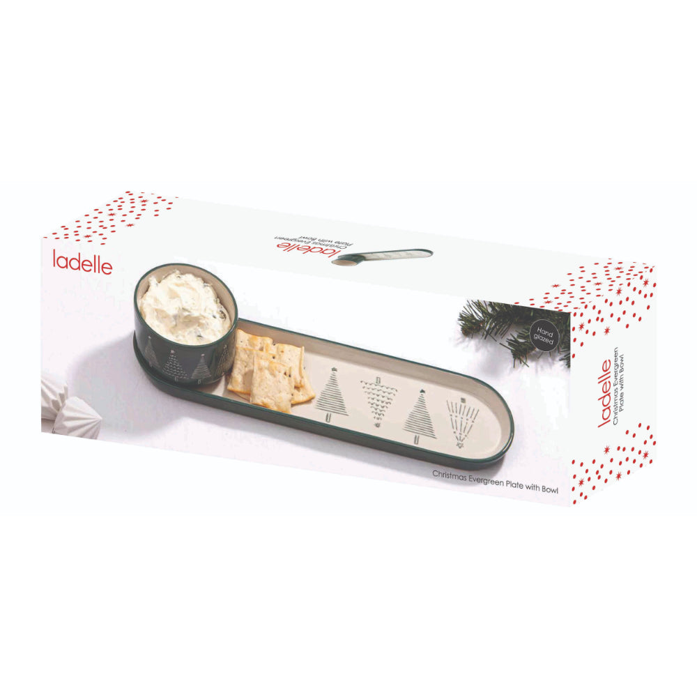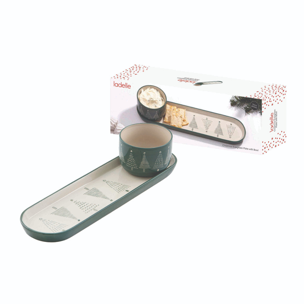 Bring timeless elegance to your holiday table with the Ladelle Christmas Evergreen Plate With Bowl. Featuring a unique hand painted green glaze each piece is delicately adorned with a charming Christmas tree pattern, adding a festive touch to your seasonal gatherings. Perfect for serving up your holiday meals or as a thoughtful gift, this collection captures the spirit of Christmas in a beautifully understated way.