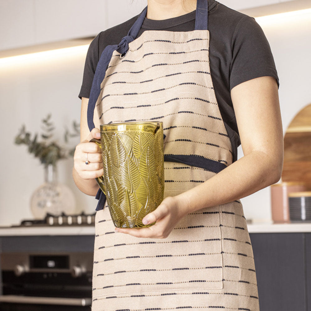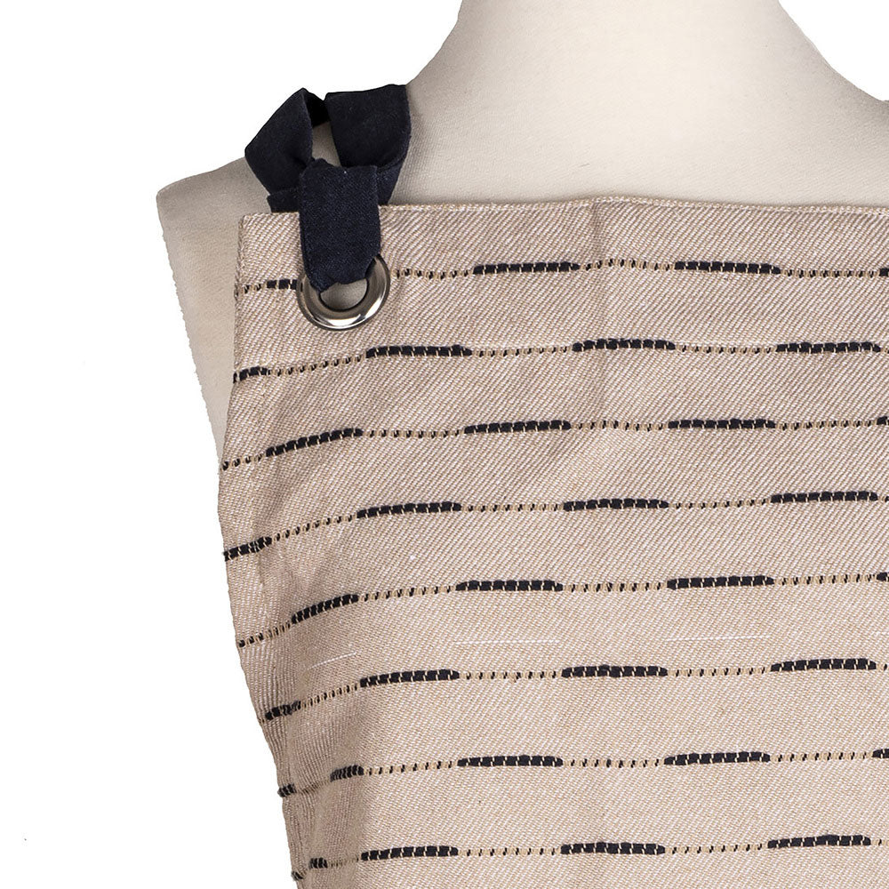 Add an eco-conscious essential to your kitchen with the Ladelle Eco Recycled Dash Apron Indigo. Crafted from a blend of 100% recycled cotton and polyester, the Ladelle Eco Recycled Dash Apron Indigo embraces sustainability without compromising on style. The natural-toned base beautifully contrasts with the tactile indigo dash pattern, adding a trendy touch. An adjustable neck slider and waist tie ensure a comfortable fit, while the convenient front pocket offers storage for essentials. Complete the look by pairing this apron with the coordinating Dash pot holders and oven mitts. Elevate your cooking experience with the eco-friendly sophistication of the Ladelle Eco Recycled Dash Apron Indigo.