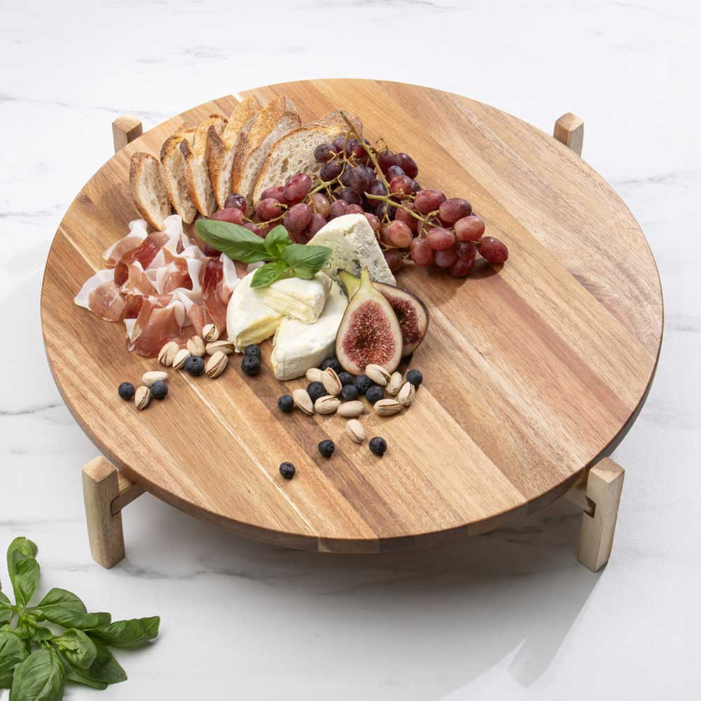 This statement piece, generously sized at 50cm and crafted from high-quality Acacia timber, is ideal for both everyday use on the kitchen bench and for special occasions and formal entertaining. Its raised, footed design allows for smooth rotation, perfect for serving.