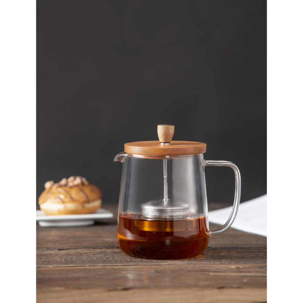 This stylish and functional tea pot has a clear, borosilicate glass jug, stainless steel infuser and acacia wood lid. As a clever feature, the infuser neck has a hinge allowing it to be raised out of the tea and kept above the waterline after tea has brewed. Suitable for loose leaf tea, tea bags or even coffee. Brew up to one litre of fresh, aromatic, antioxidant rich tea with this modern pot.