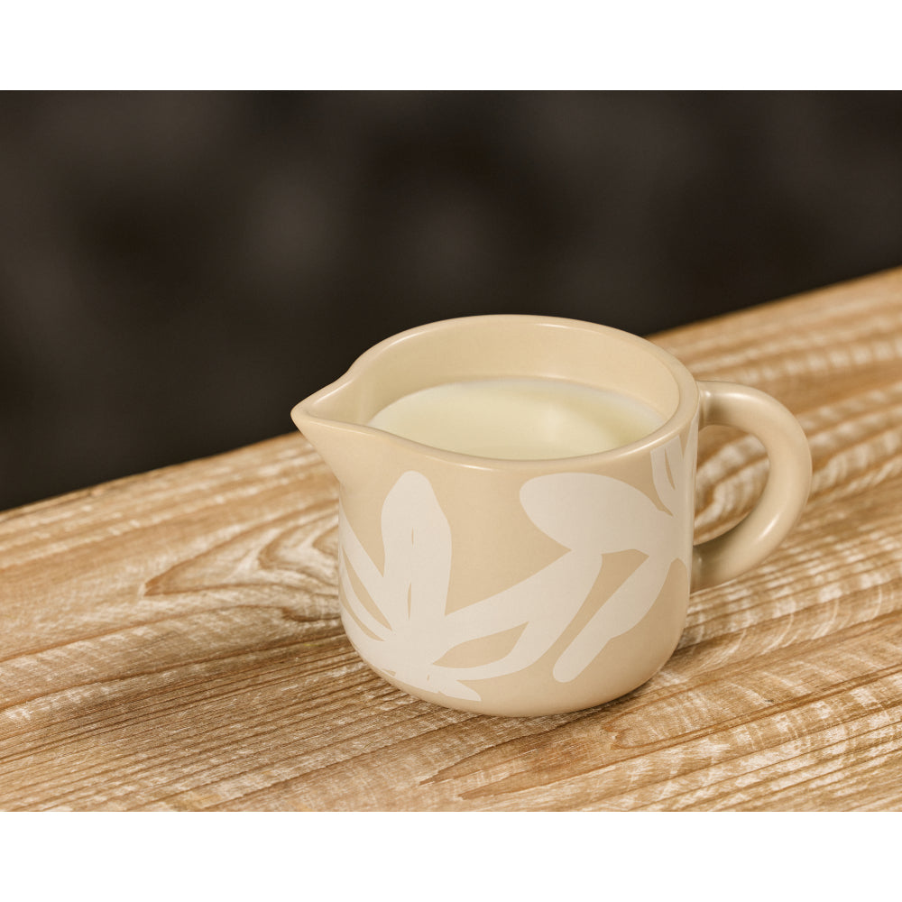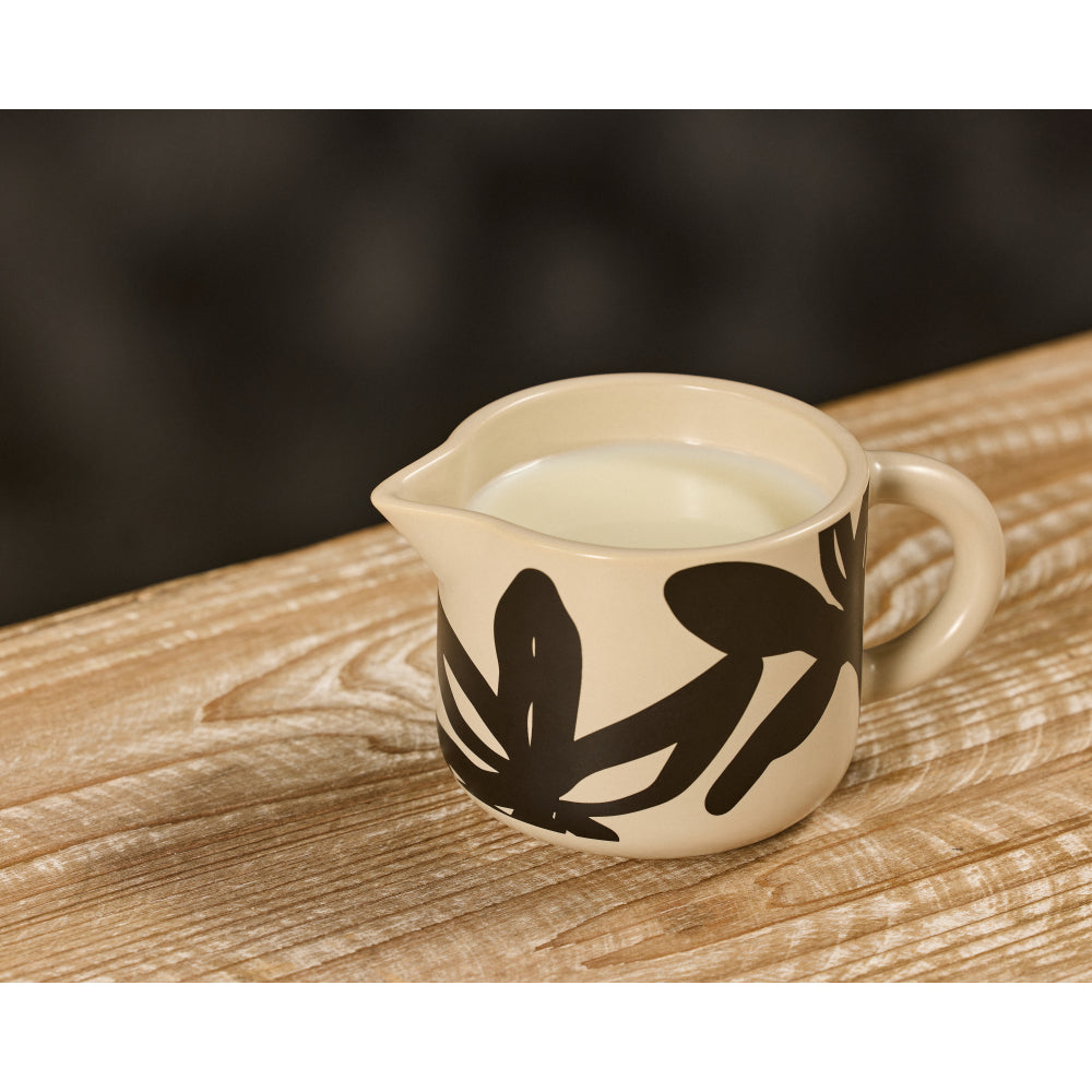 Could you imagine a life without coffee or tea? We can't! We're dedicated to providing tools that craft the ultimate brewed beverages. The Leaf & Bean Freya Milk Jug will make your tea or coffee time ritual extra special. The abstract black floral print on a soothing oat backdrop lends delightful colour to your benchtop.