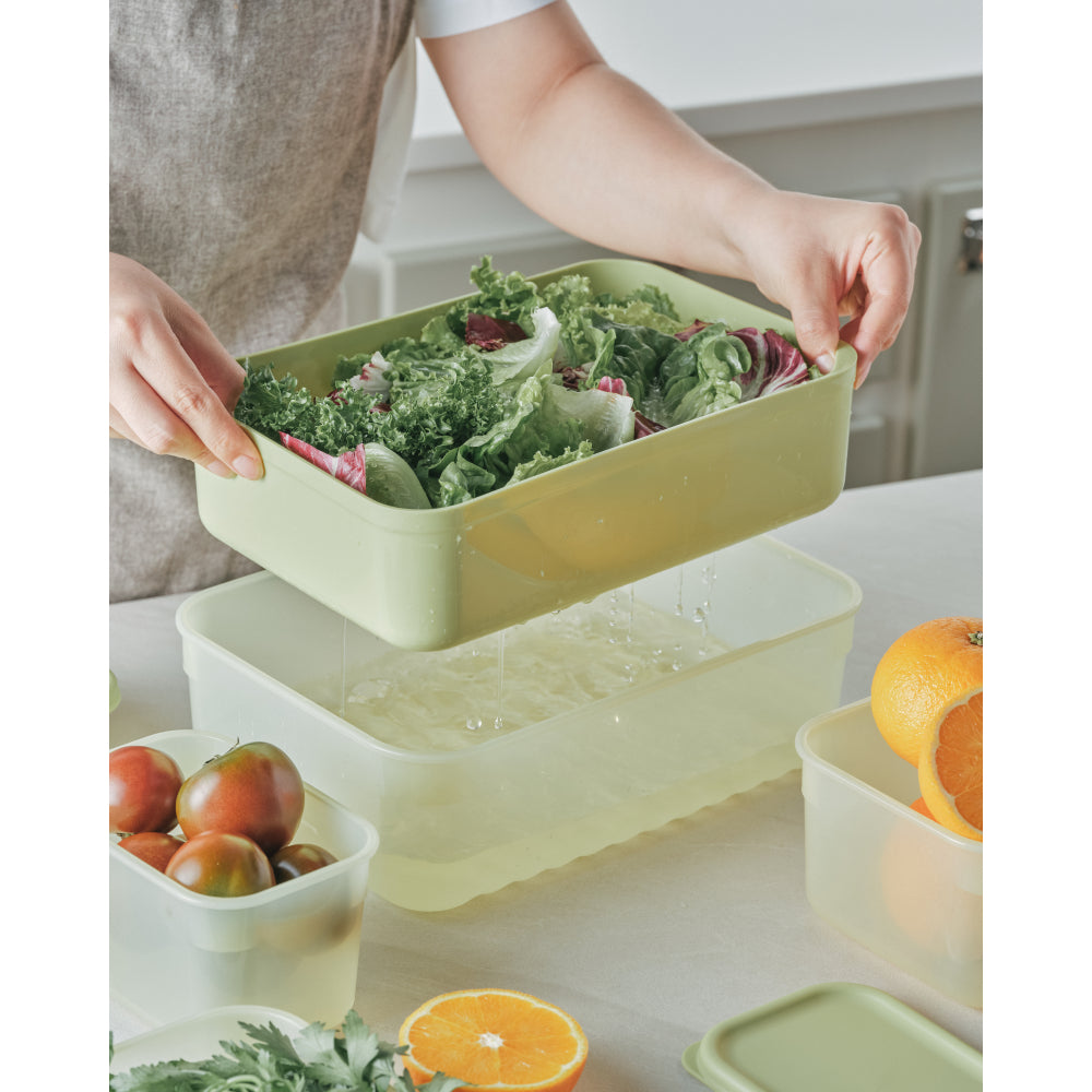 Keep your fruits and vegetables fresh for up to 31 days with the LocknLock Fresh Block 2 Piece Set - 3.2L & Tray, featuring innovative Zeolite Technology. This set includes an airtight seal and a specially designed tray to enhance air circulation and ensure optimal preservation.