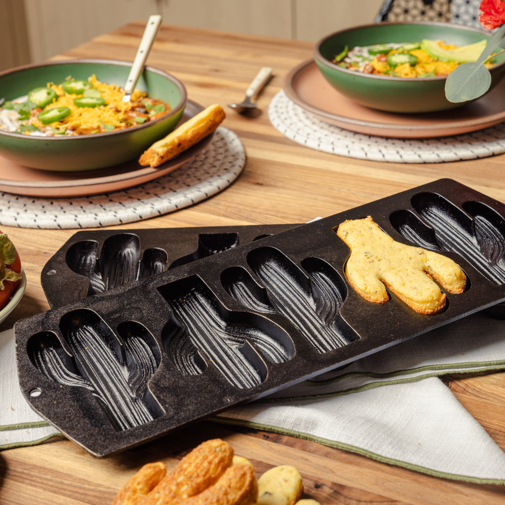 This funky Lodge Cast Iron Cactus Pan is perfect for baking shareable creations like cornbread, mini cakes, or brownies. The naturally seasoned baking surface provides an easy-release finish, and the durable cast iron won’t dent, bend, or warp. Bring fun cactus treats to the table for your next get-together.