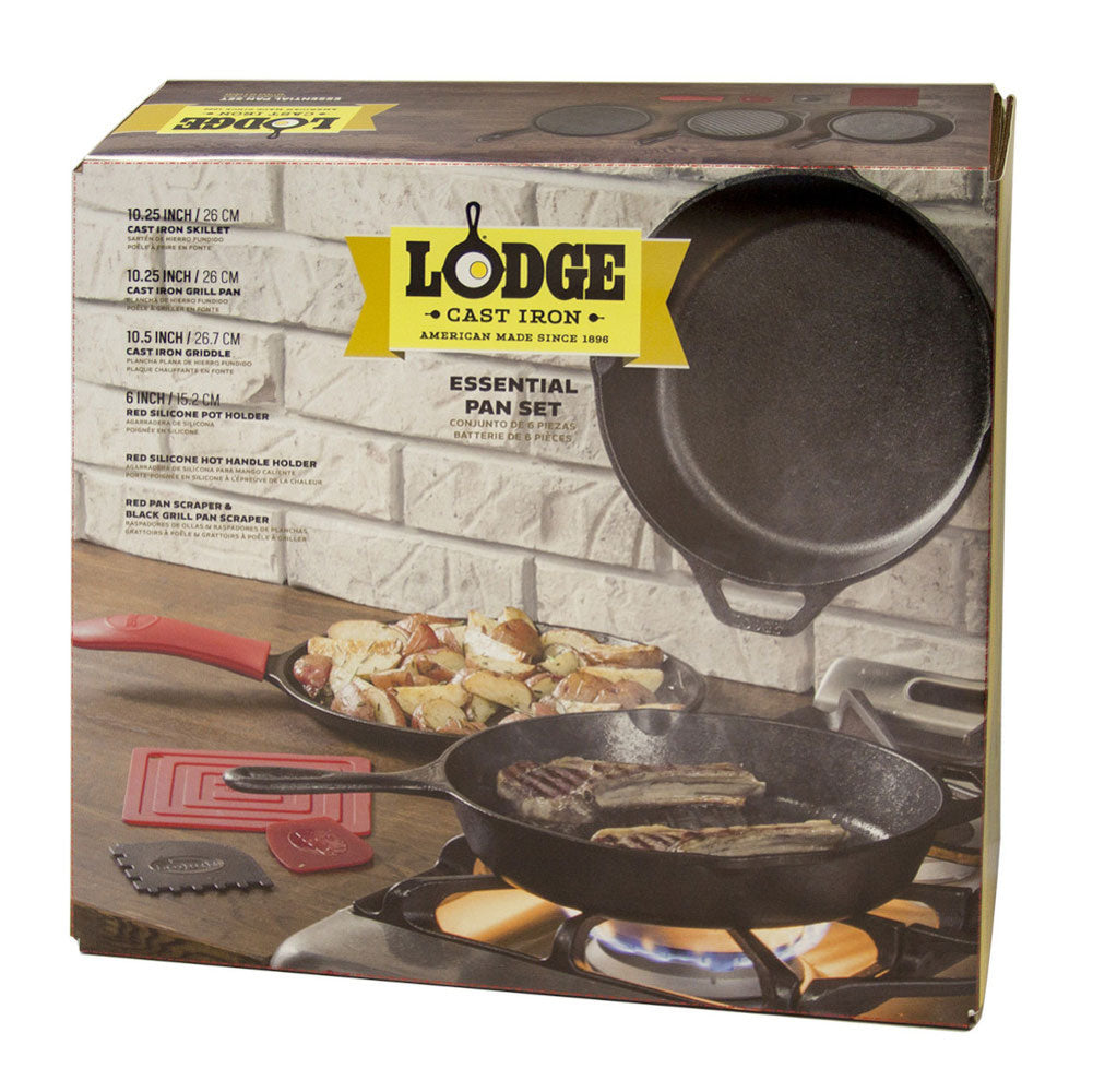 The Lodge 6 Piece Pan Set combines the most needed cast iron cookware and silicone accessories for a complete kitchen. Designed to be cherished for decades, this cookware set is made in the USA with premium materials and comes seasoned so it’s ready to use straight away. This set of kitchen staples is also easy to care for so you can enjoy the benefits of cooking with cast iron without the stress of maintenance. The durable pieces in the Lodge 6 Piece Pan Set can withstand everything from home cooking on the grill, oven or stove, as well as the heat of a campfire making them the perfect gift for the home chef in your life, or as part of your camping set up.