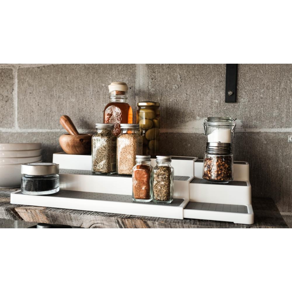 The expandable shelf organiser by madesmart® is the perfect solution for maintaining and organising the kitchen pantry. The organiser expands and contracts to better fit your space and is perfect for organising items like spices, cans, or jars, with the 3-tier design making viewing easy.