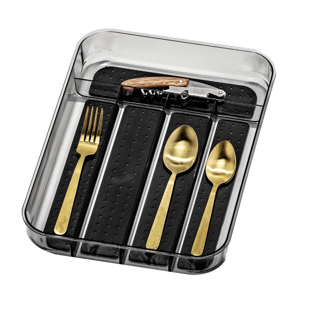 madesmart Clear Soft Grip 5 Compartment Cutlery Tray Carbon