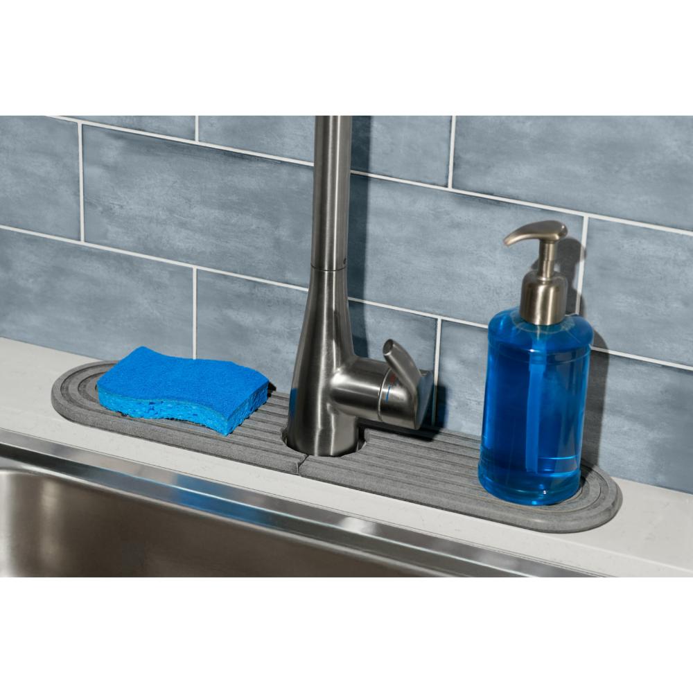 The madesmart® drying stone small sink tray 2 piece set enhances kitchen sinks with style, efficiency, and a modern twist. This low-profile tray is constructed of high-quality absorbent, mineral-based material designed to accelerate the evaporation of moisture. Composed of non-toxic, naturally occurring materials with antimicrobial properties, the drying stone eliminates germs through a rapid dehydration process upon contact to improve the hygiene of sponges, dish wands, and soap bottles placed upon the tray. If water-logged, the drying stone can be set in the sun or baked in the oven to accelerate drying.
