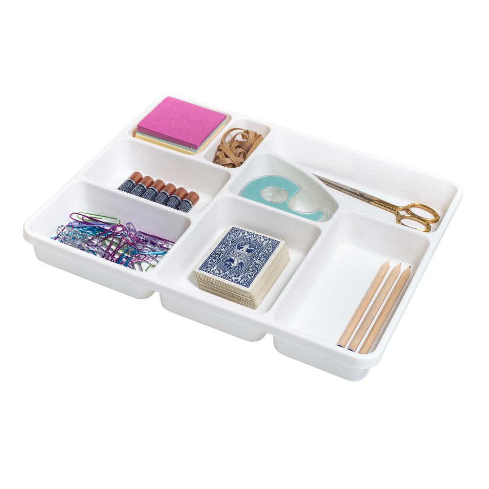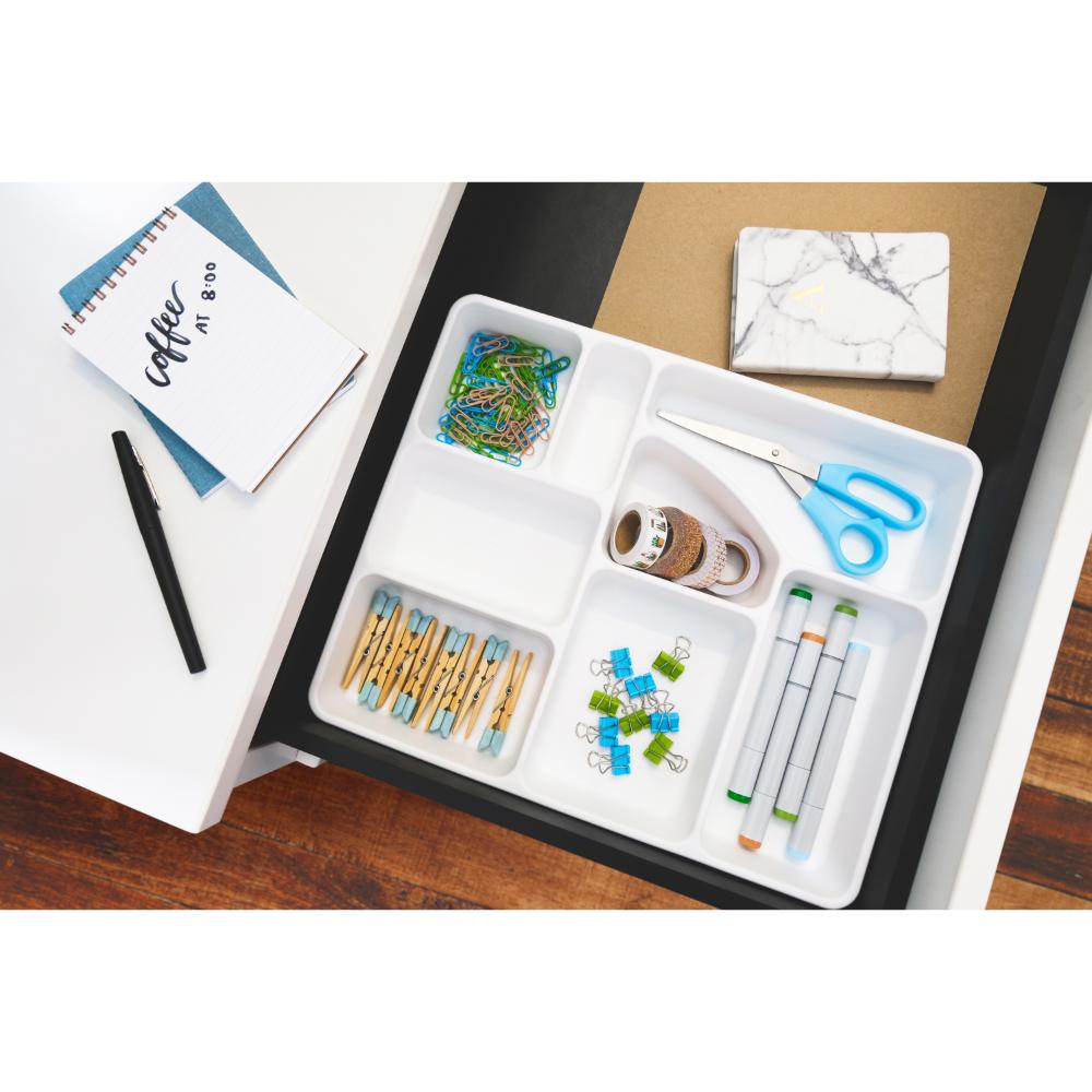 A must have for all households, the junk drawer organiser by madesmart® is made from high-quality, bpa-free plastic, and is built to last. This simple design with clean lines and 4 or 8 varied sized compartments, features soft-grip lining, functioning as a cushioning and grip for all kinds of household bits and pieces, like tools, kitchen or bathroom items and even kids' toy parts.