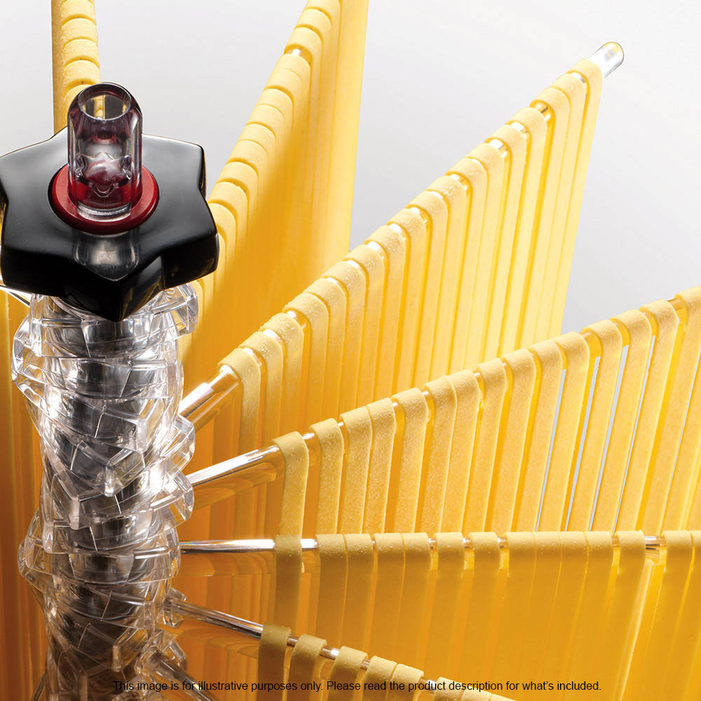 If you find yourself draping newly made pasta all over every single appliance that you own, just to dry it, then you know you need some help.Marcato come to your rescue thanks to their cleverly created, and beautiful Tacapasta Pasta Drying Rack with Clear arms. This fantastic Pasta Drying Rack is made in a chrome-plated steel and polycarbonate and folds up for easy storage.With sixteen 20 cm racks, this ingenious Pasta Drying Rack allows you to dry all your pasta in one go. Simply use the handy rod, which is stored in the centre of the rack, to transfer your pasta from the machine to the rack, hang your pasta and wait. In no time at all, you’ll be enjoying perfect pasta…made by you! Well, you and Marcato, of course…With over 80 years of experience, Marcato are the experts when it comes to creating the machines we use to make pasta, bread, biscuits and even pizza! Their continuous innovation and drive to always provide top quality products, has allowed for Marcato to be world renowned for their durability and reliability.